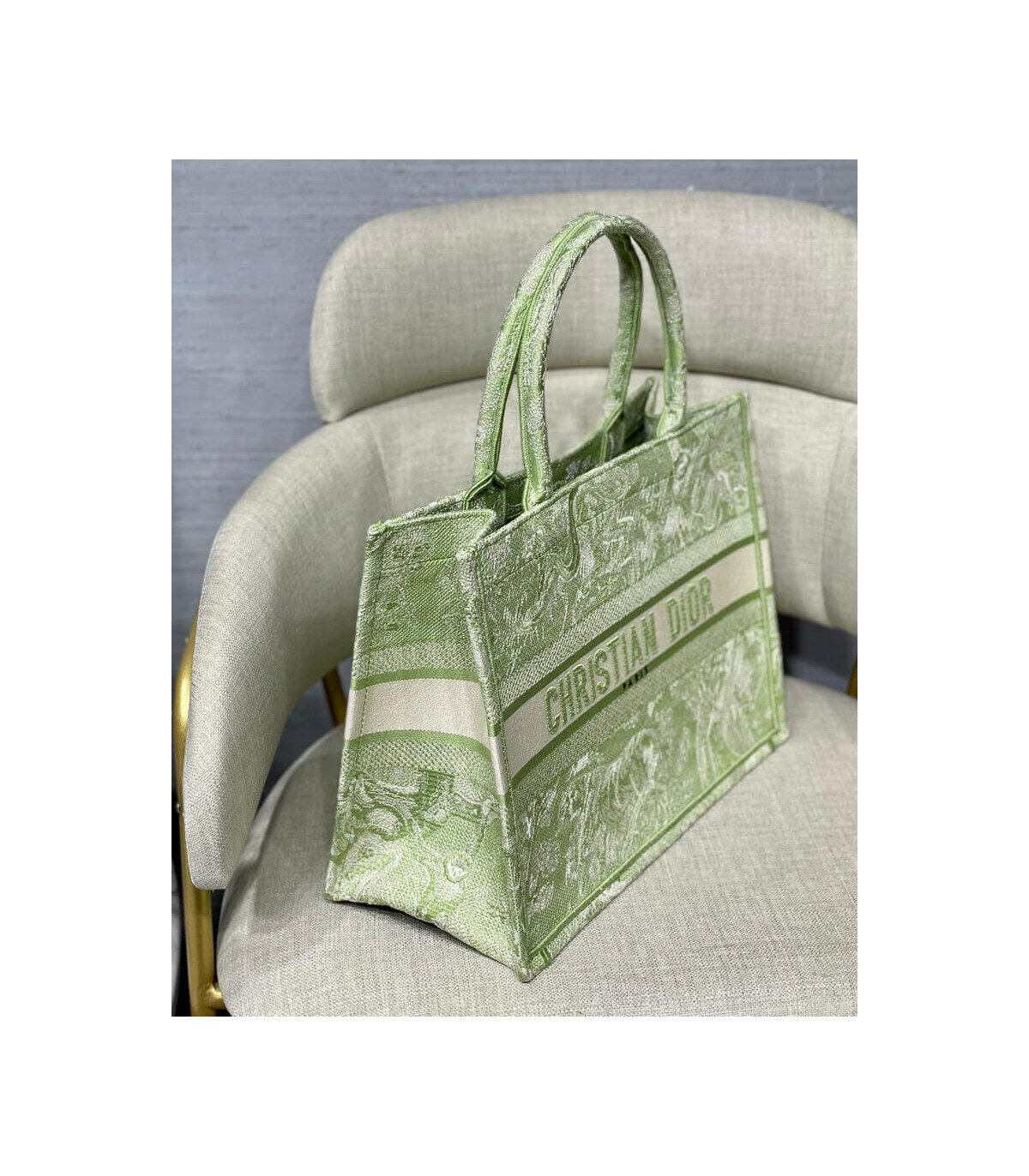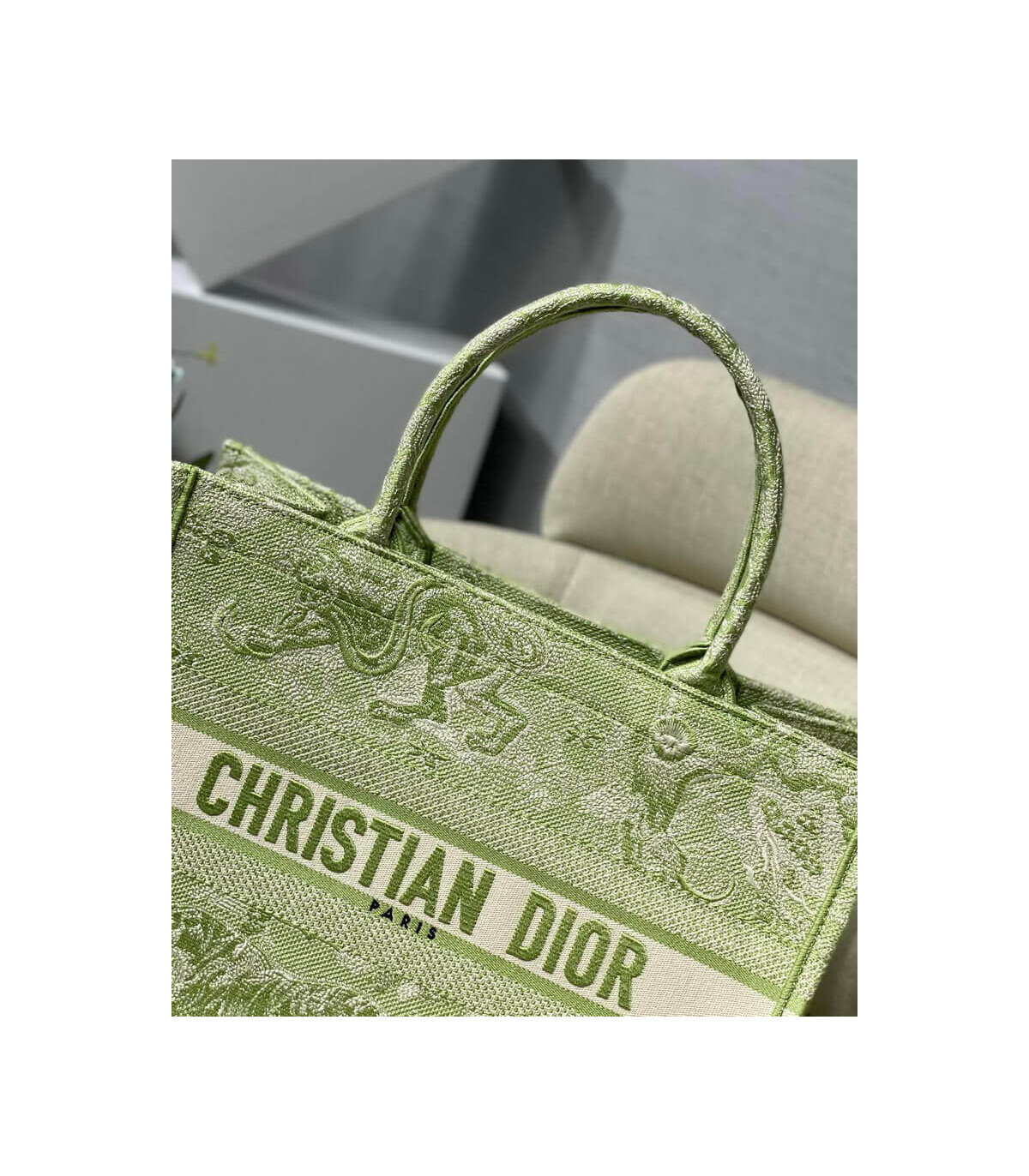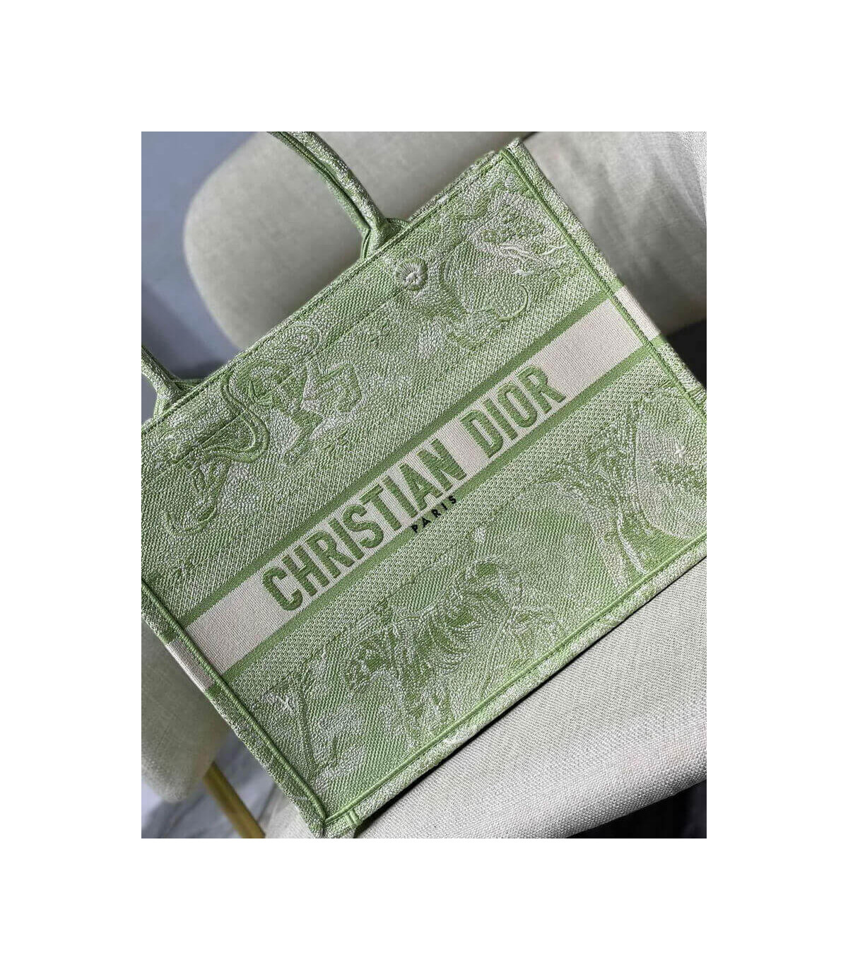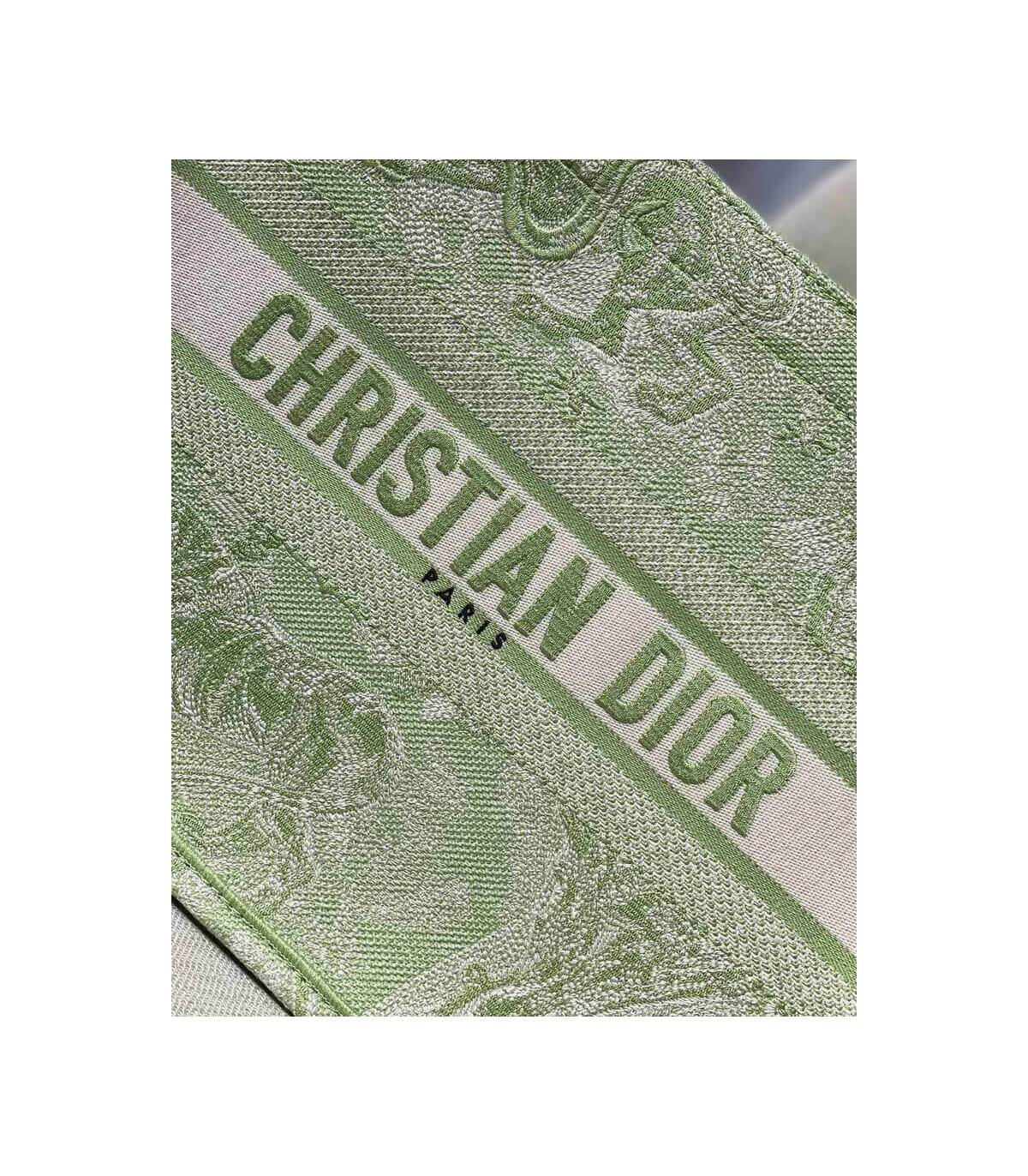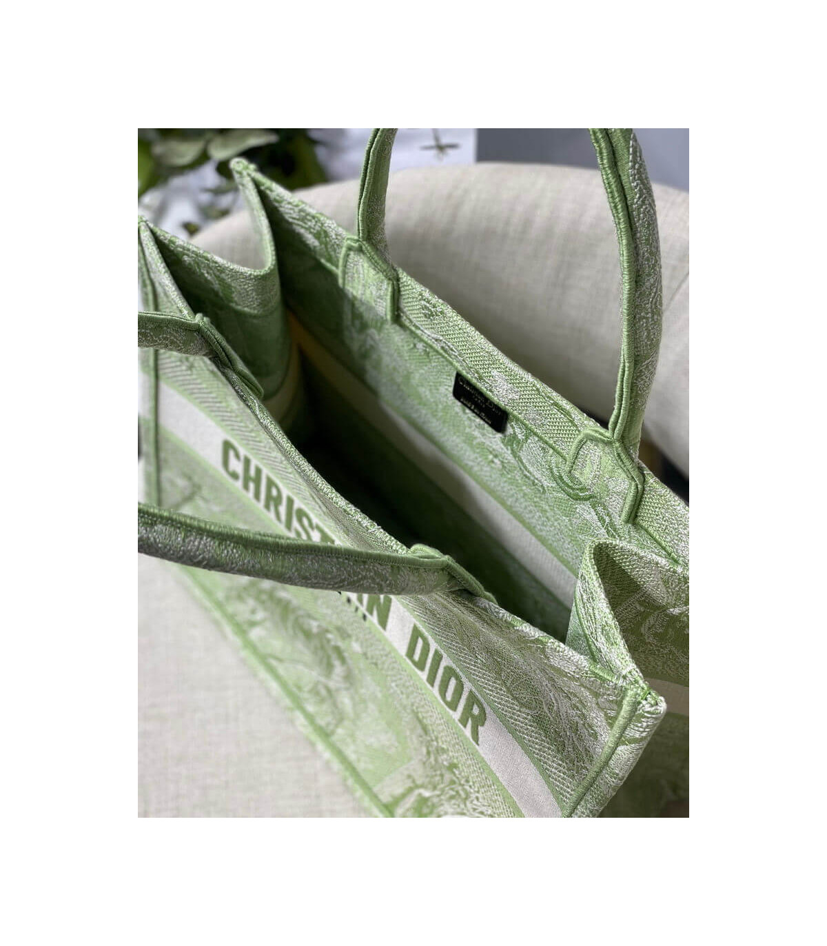 • Dior Small Book Tote Lime Toile de Jouy Reverse Embroidery