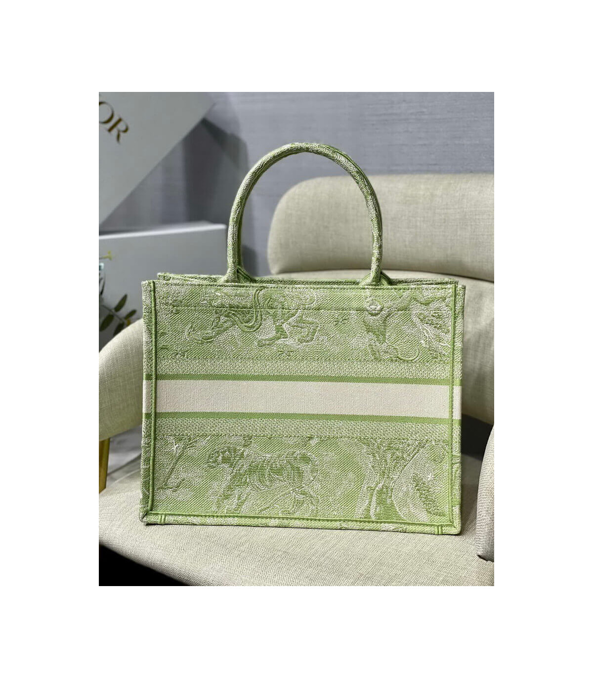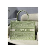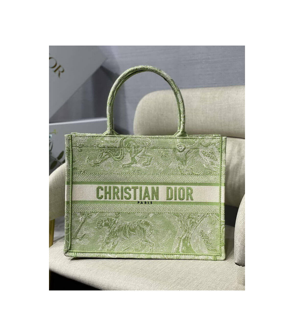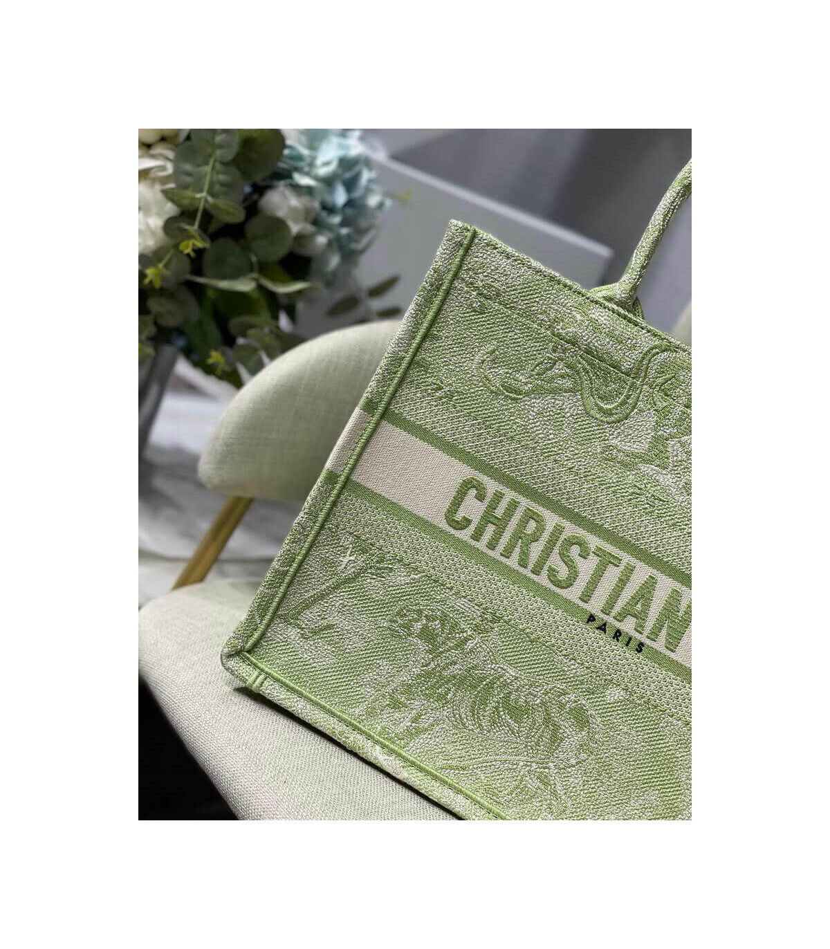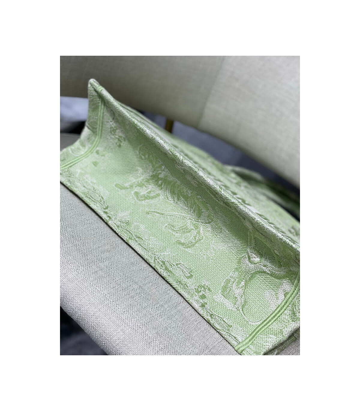 • Dior Small Book Tote Lime Toile de Jouy Reverse Embroidery