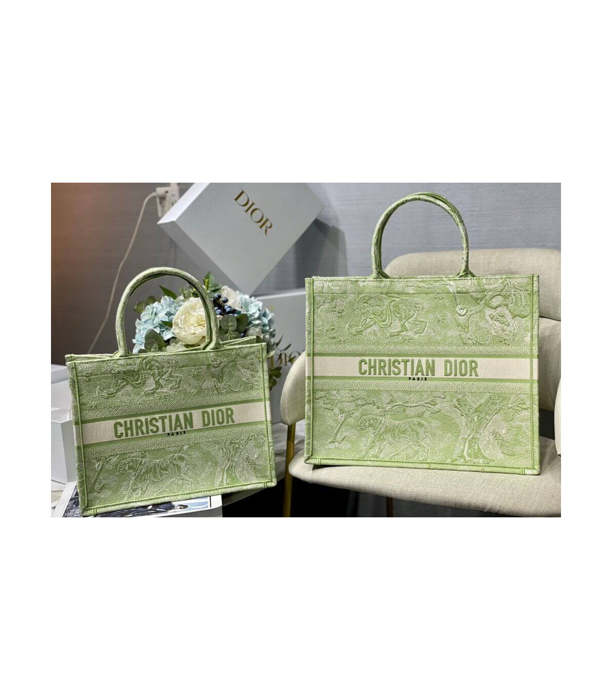 Dior Small Book Tote Lime Toile de Jouy Reverse Embroidery