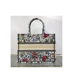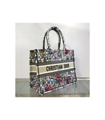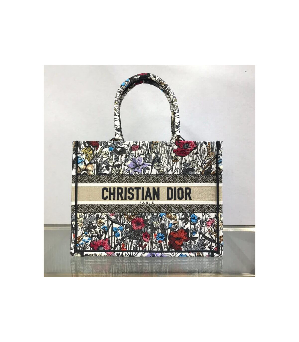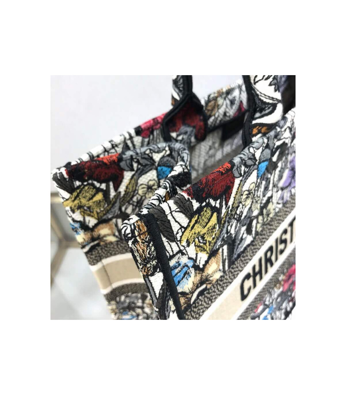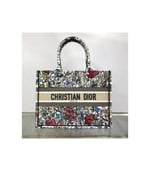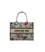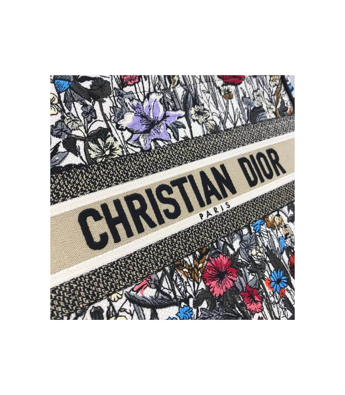 The Dior Book Tote, an original style introduced by Creative Director Maria Grazia Chiuri, has become a staple of the Dior aesthetic. This small style, fully embroidered with the Mille Fleurs motif, is reminiscent of bucolic Apulian landscapes, a central theme of the collection. Adorned with the ‘Christian Dior’ signature, the Dior Book Tote exemplifies the House’s signature savoir-faire and can be paired with other Mille Fleurs creations from the collection.