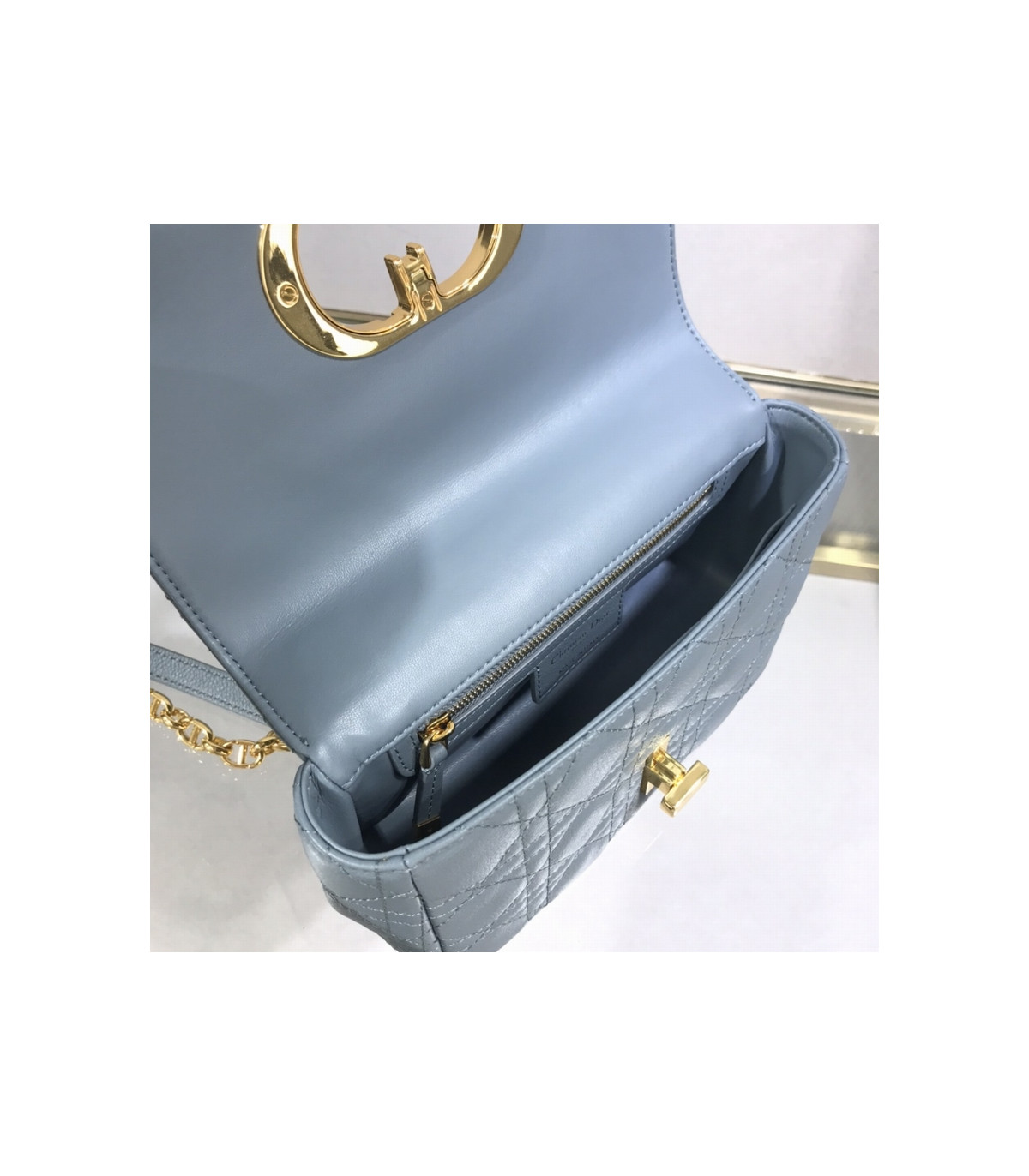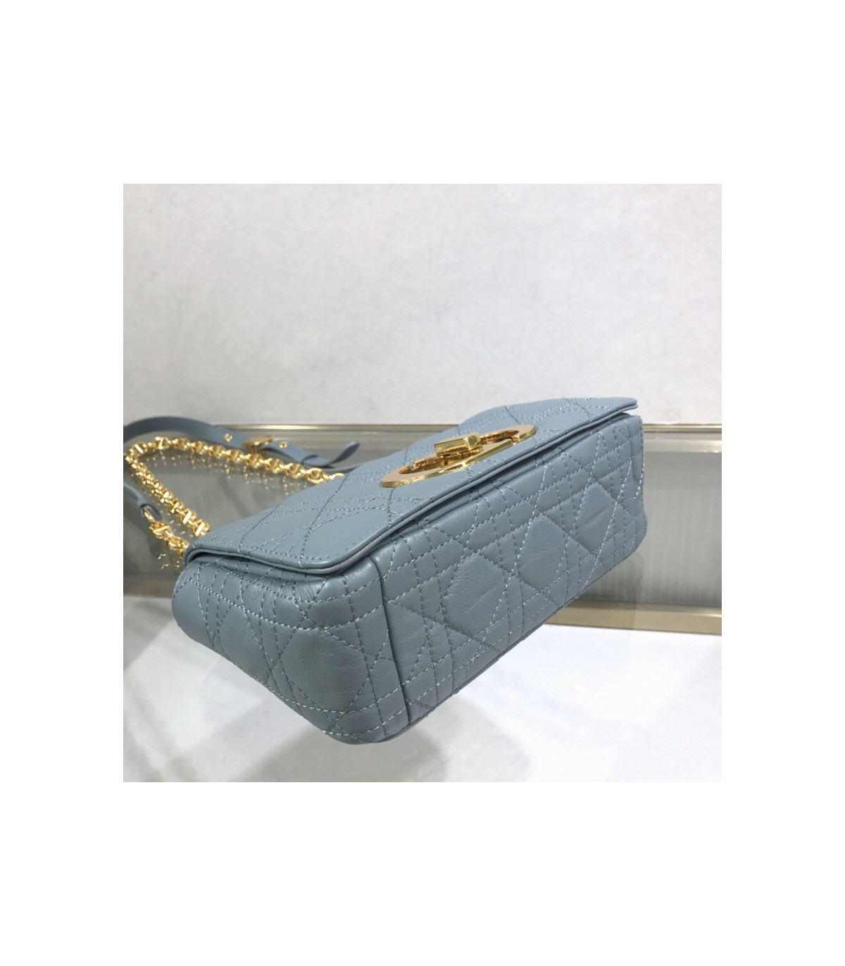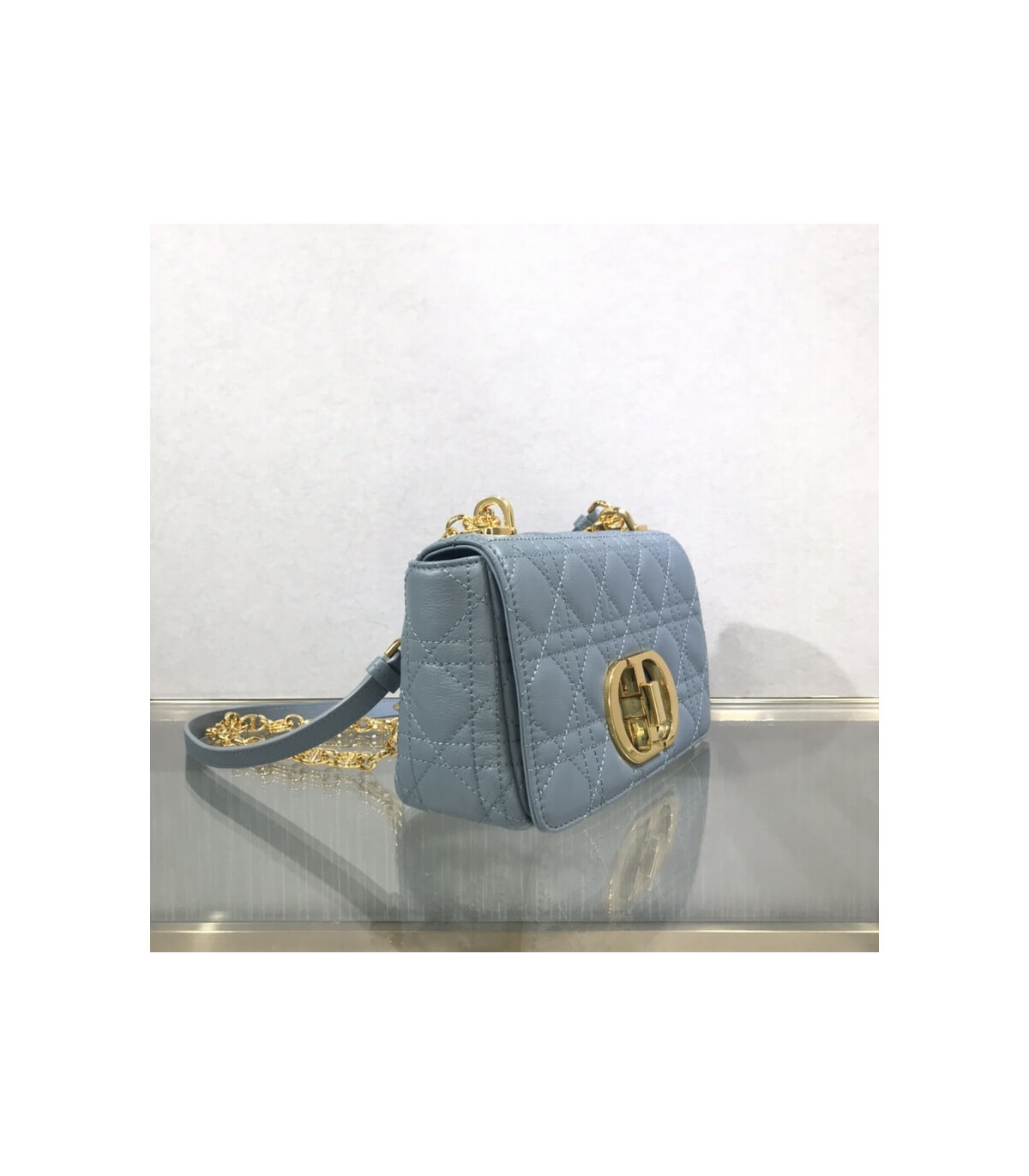 • Dior Small Caro Bag Cloud Blue Supple Cannage Calfskin