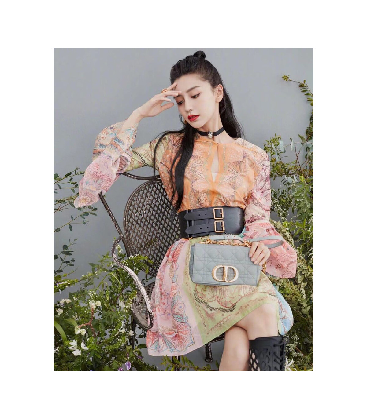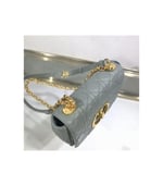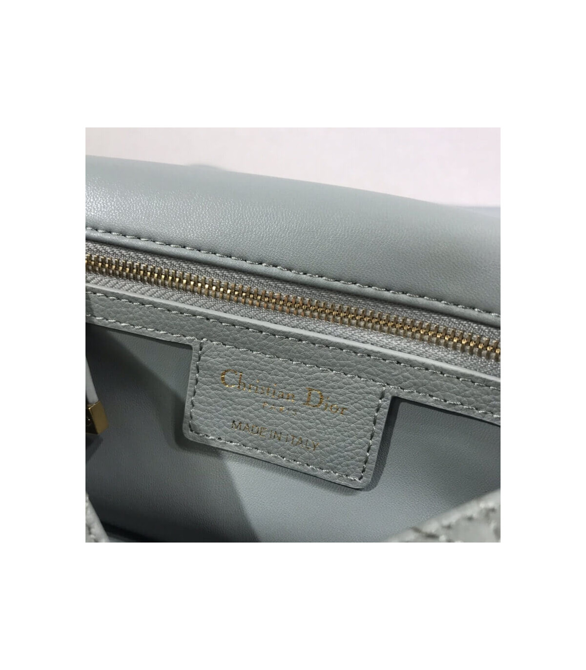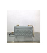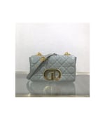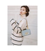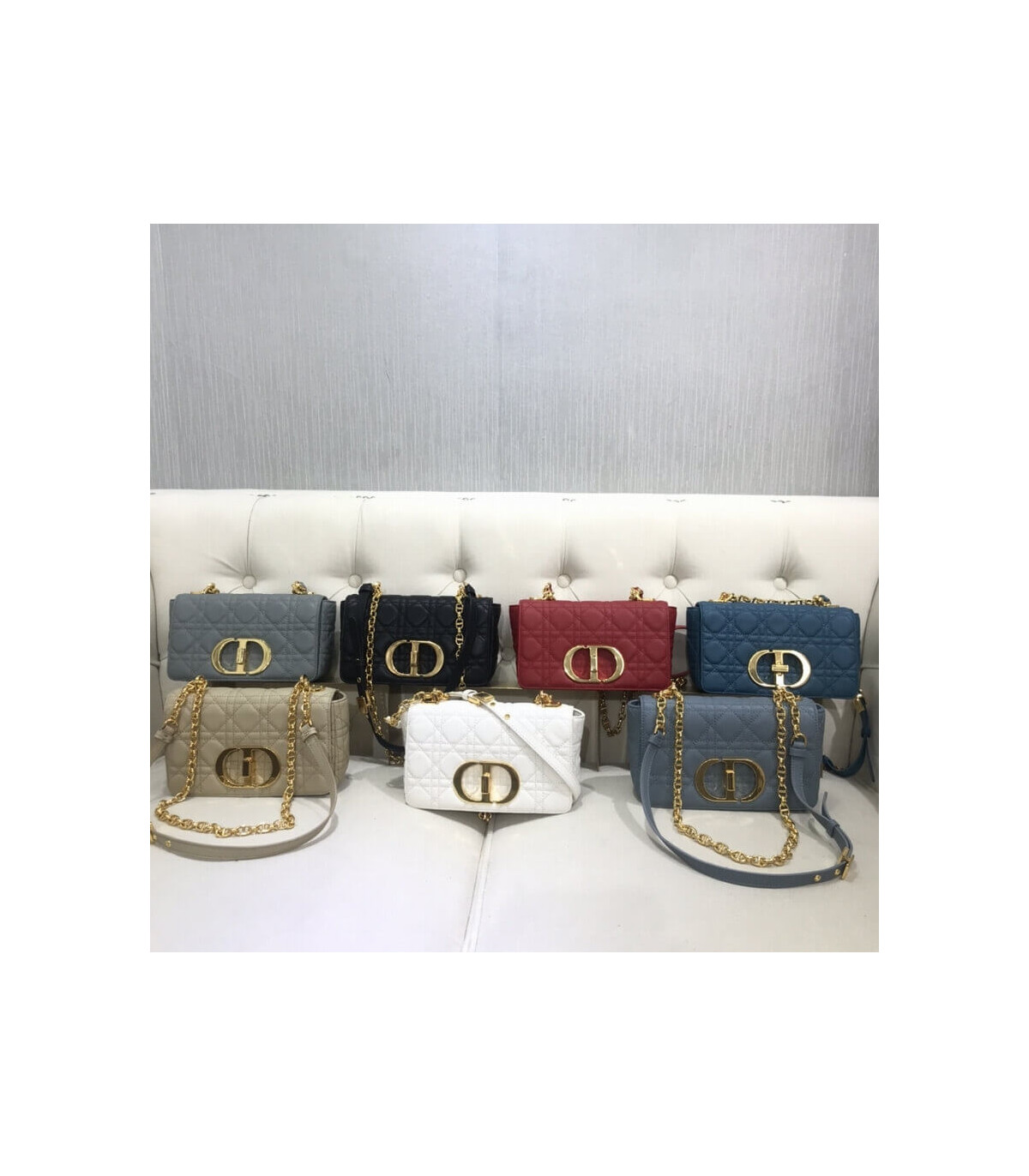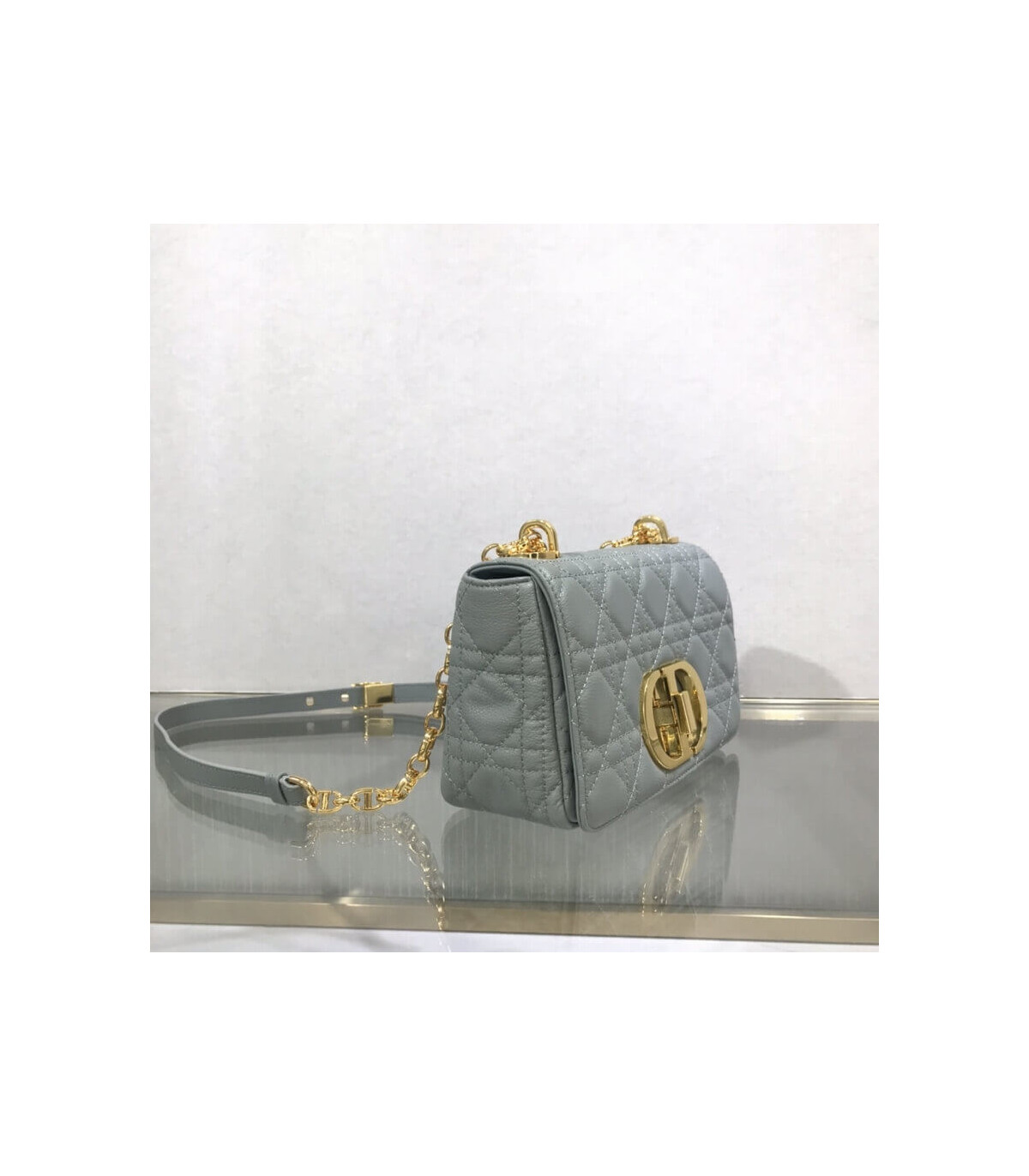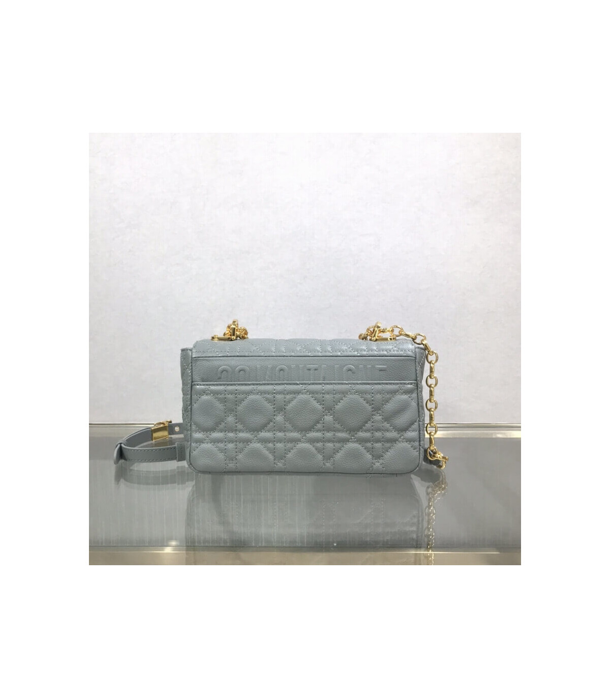 The new Dior Caro bag, in black calfskin, is adorned with the instantly recognizable Cannage stitching. The supple bag features a flap with an antique gold-finish metal twist ‘CD’ clasp, inspired by the seal of a Christian Dior perfume bottle. The removable signature ‘CD’ chain link shoulder strap can be replaced with a wide embroidered strap, allowing the small style to be worn during both the day and the evening for a modern, elegant look.