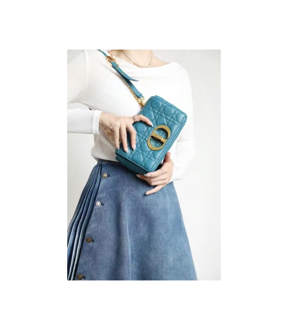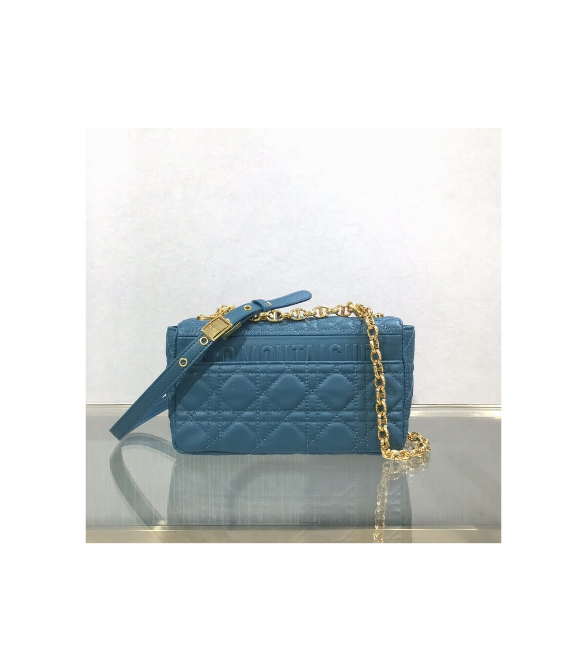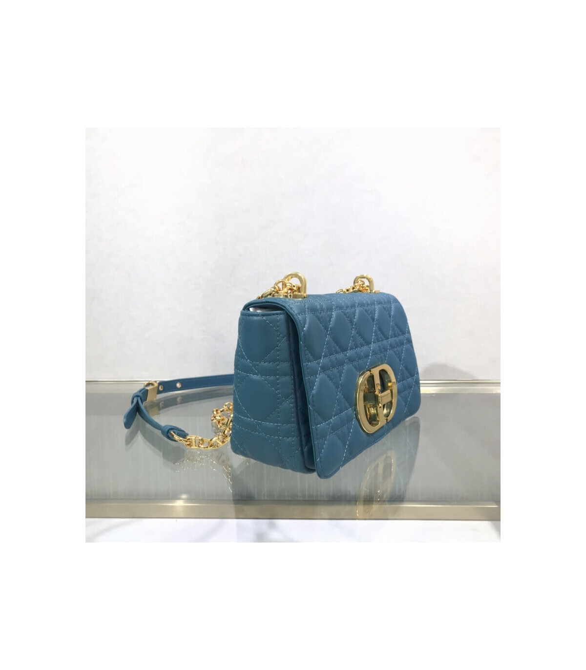 • Dior Small Caro Bag Ocean Blue Supple Cannage Calfskin