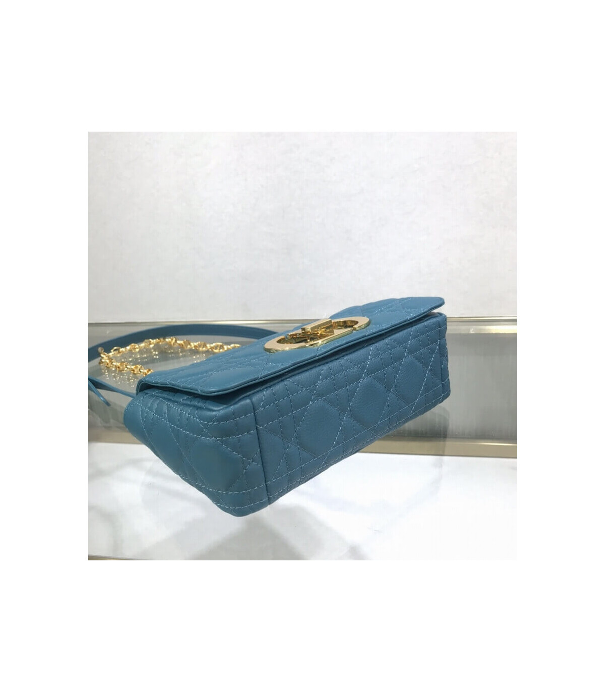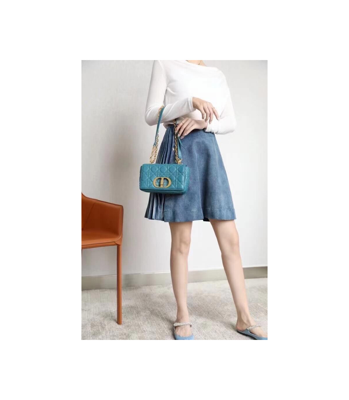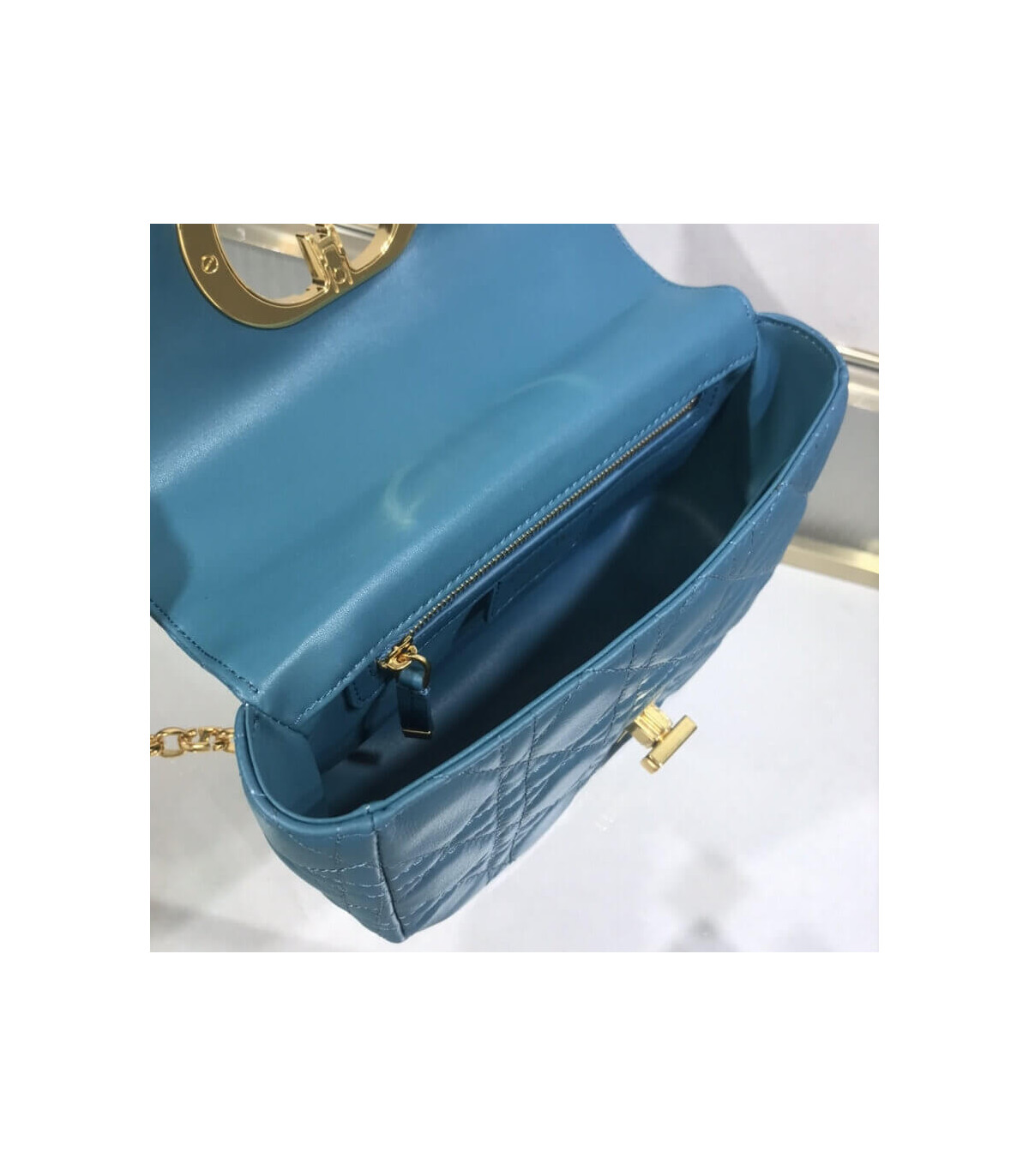 • Dior Small Caro Bag Ocean Blue Supple Cannage Calfskin
