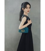 The new Dior Caro bag, in black calfskin, is adorned with the instantly recognizable Cannage stitching. The supple bag features a flap with an antique gold-finish metal twist ‘CD’ clasp, inspired by the seal of a Christian Dior perfume bottle. The removable signature ‘CD’ chain link shoulder strap can be replaced with a wide embroidered strap, allowing the small style to be worn during both the day and the evening for a modern, elegant look.