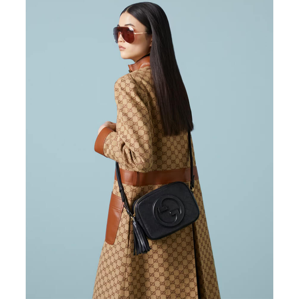 The Round Interlocking G that characterizes the Gucci Blondie line originates from the House archives. Signature pieces such as this Gucci Blondie shoulder and crossbody bag reinterpret the emblem as a subtler leather patch detail.