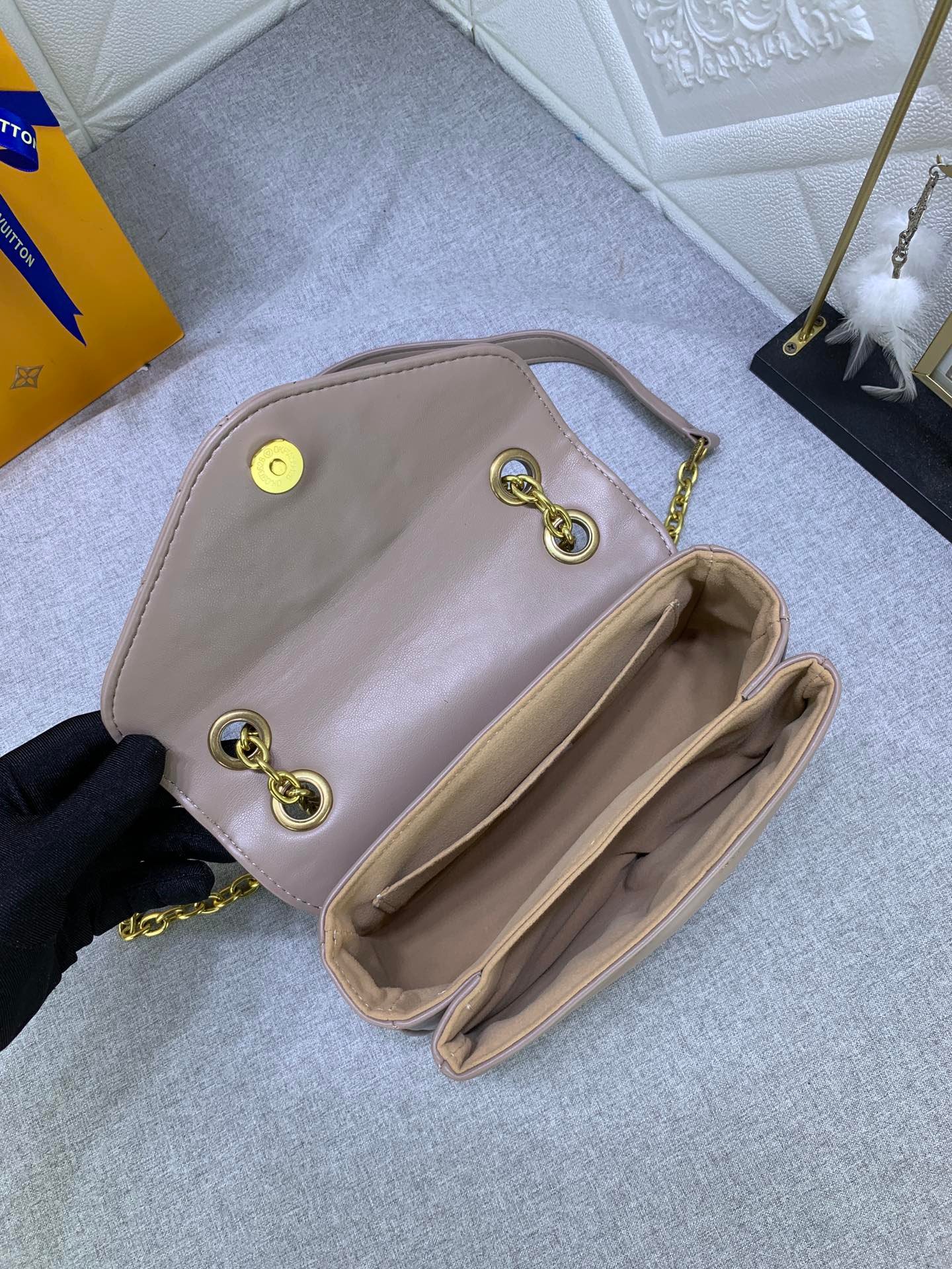 • Louis Vuitton New Wave Chain Bag Taupe Fonc Brown 21Cm