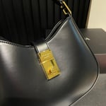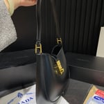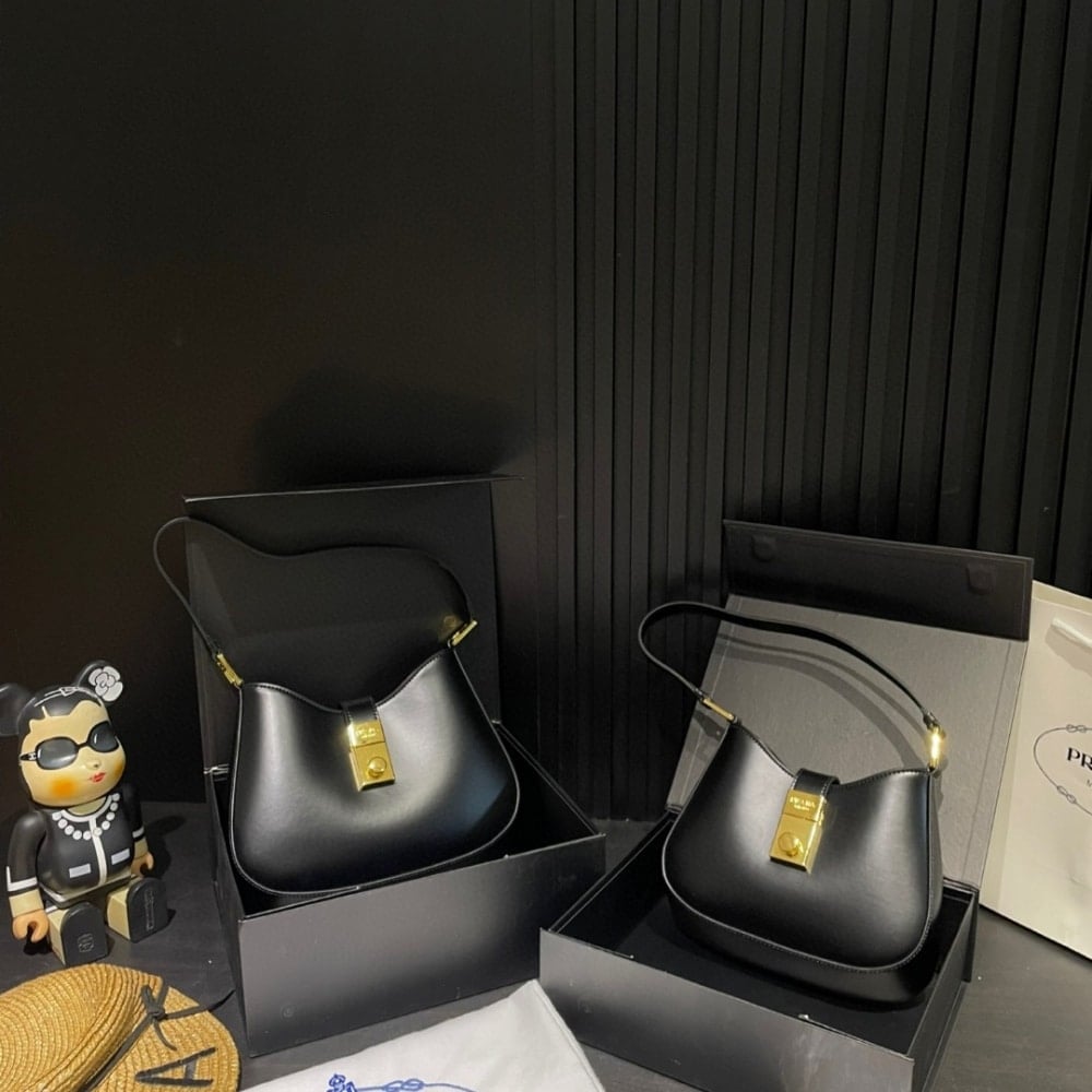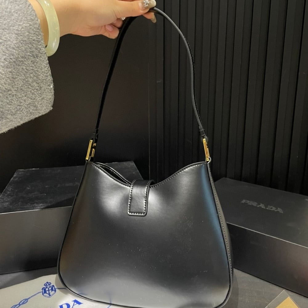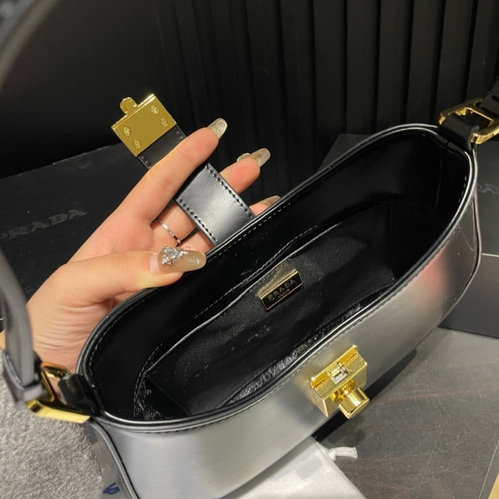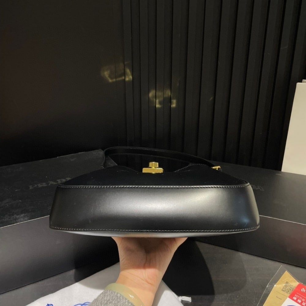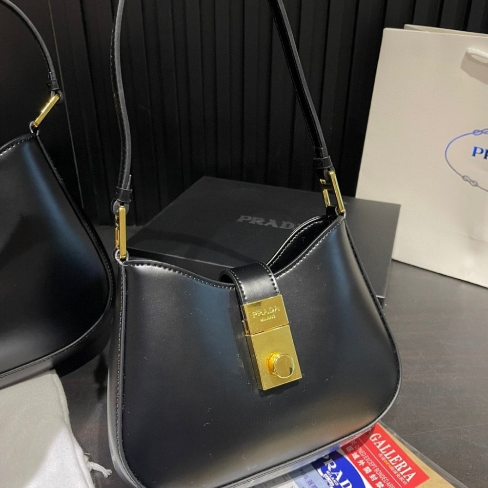 • Prada Cleo Brushed Leather Shoulder Bag With Clasp Closure Black 26Cm