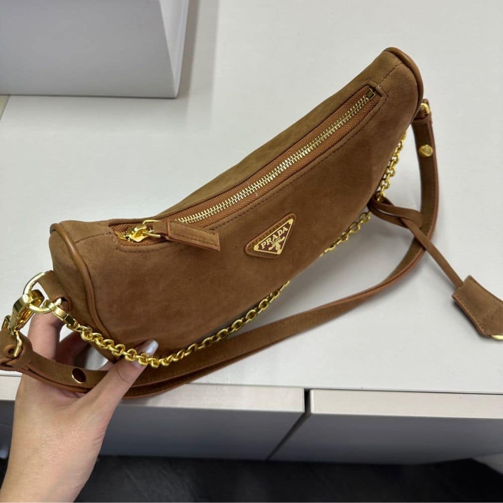Prada Re Edition Mini Suede Shoulder Bag Brown 28Cm
