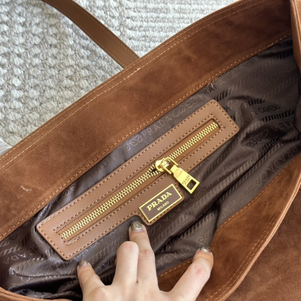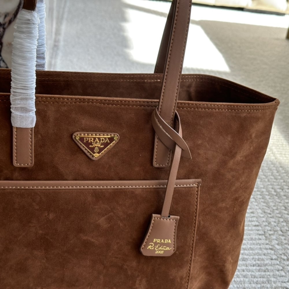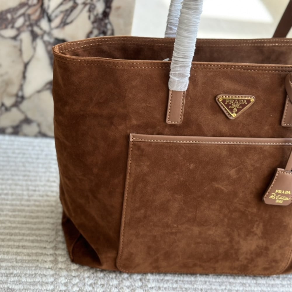 Prada Suede Double Tote Bag Cocoa Brown 35Cm