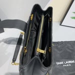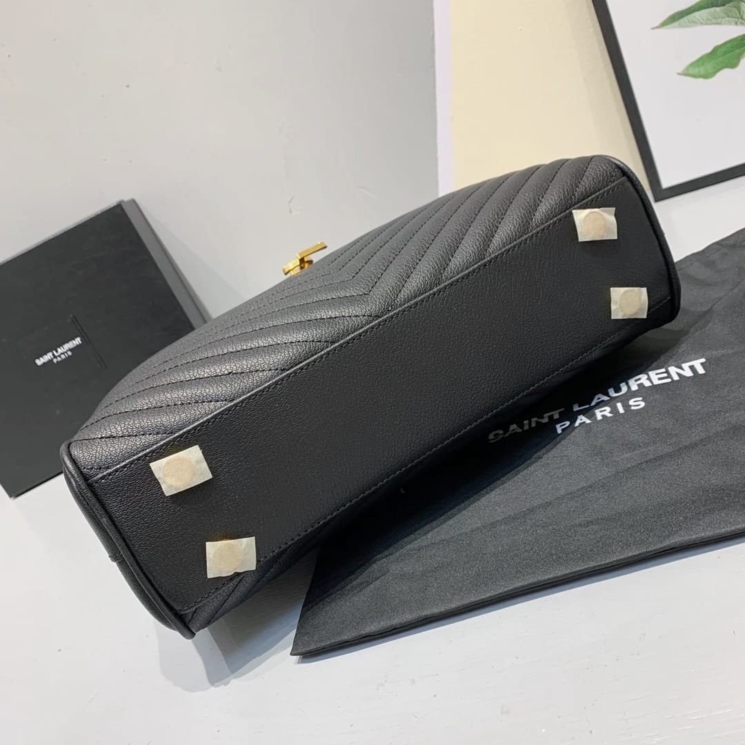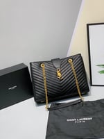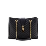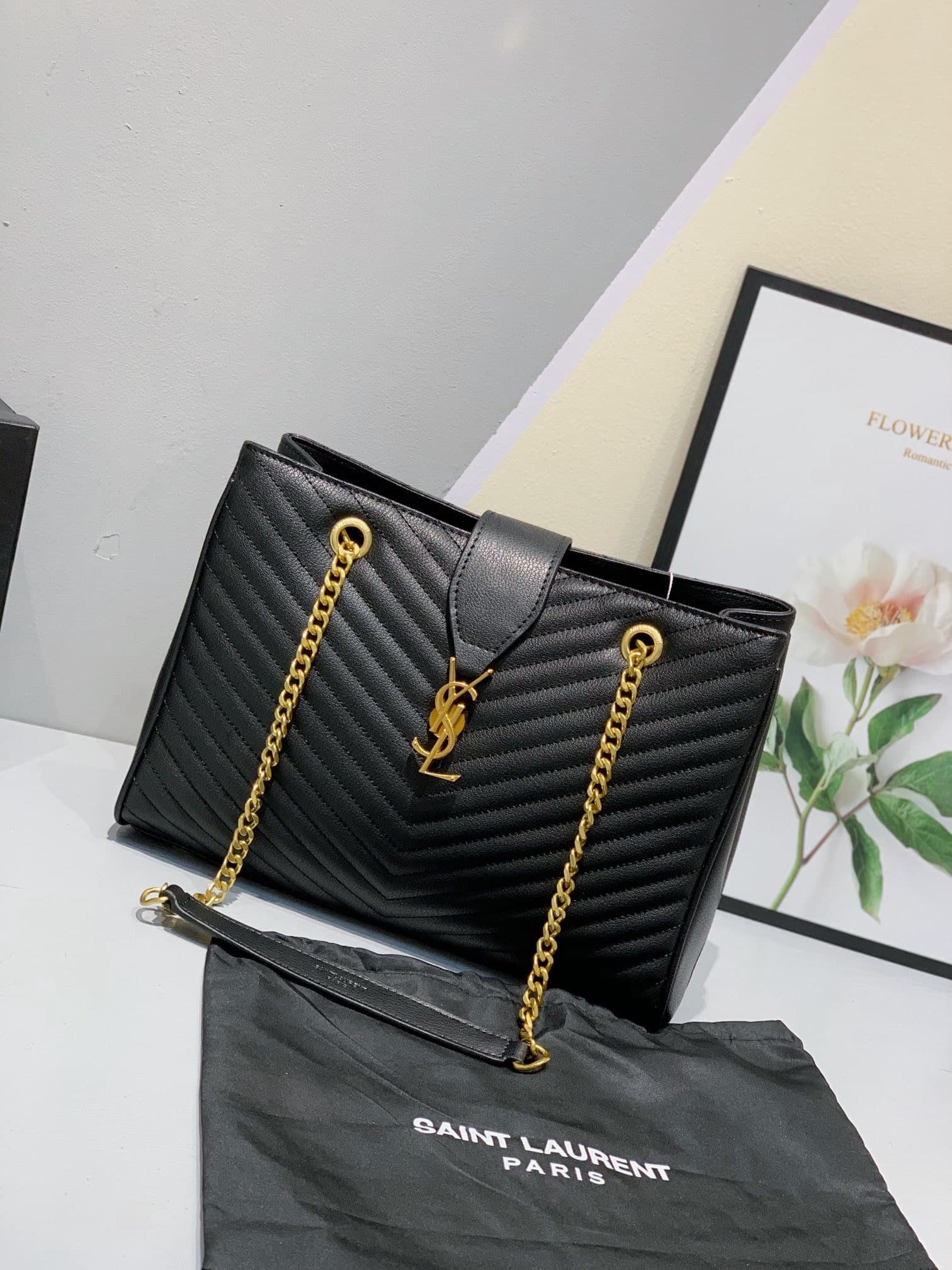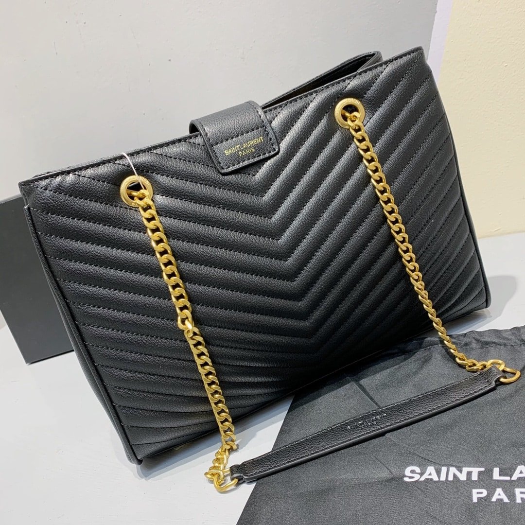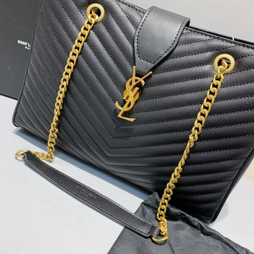• Saint Laurent Black Grain De Poudre Matelasse Chevron Monogram Shopping Bag Gold Hardware