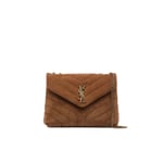• Saint Laurent Cinnamon Loulou Medium Chain Bag In Suede Brown 23Cm