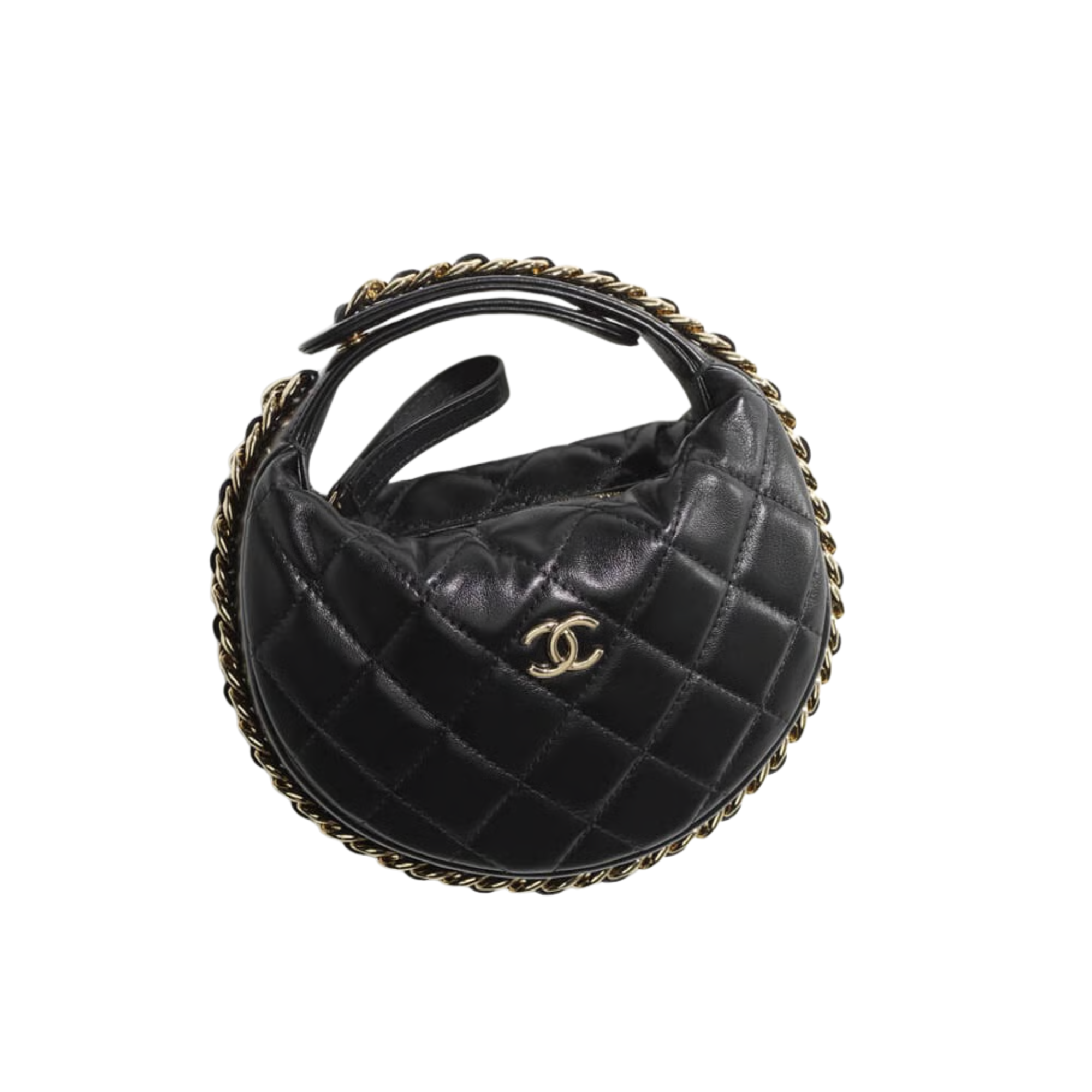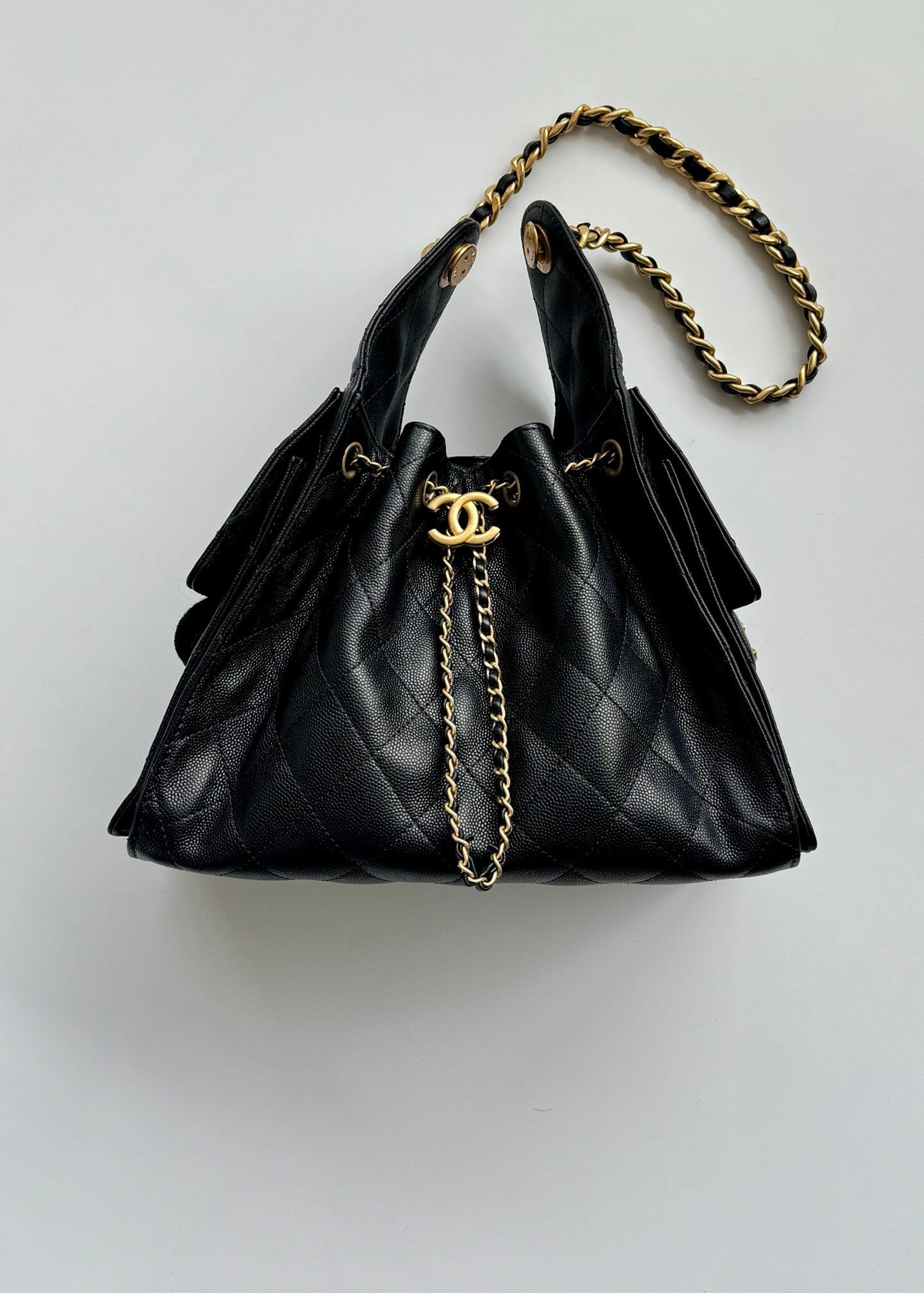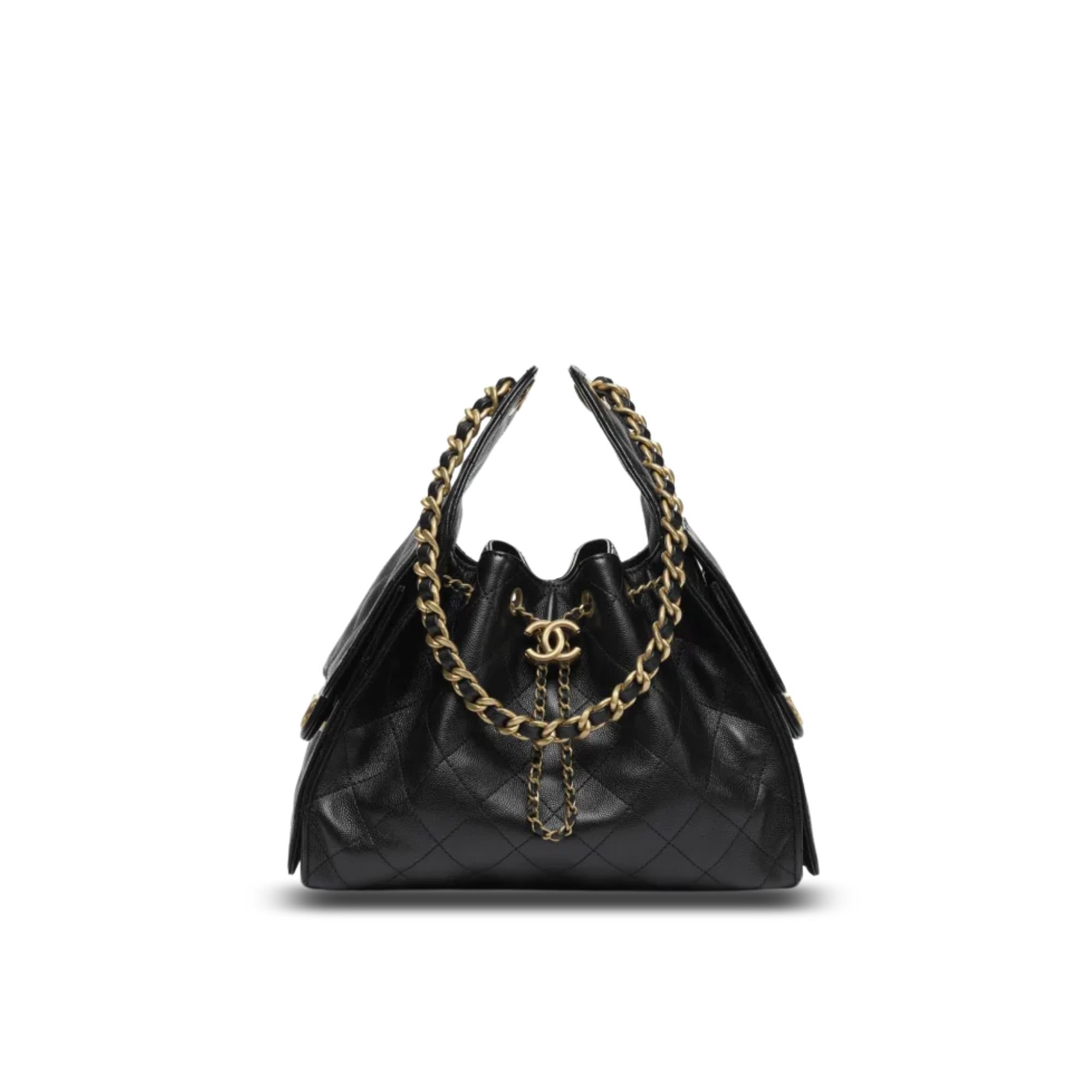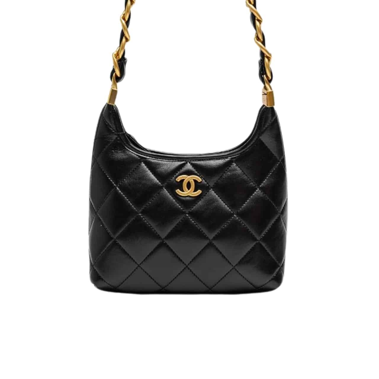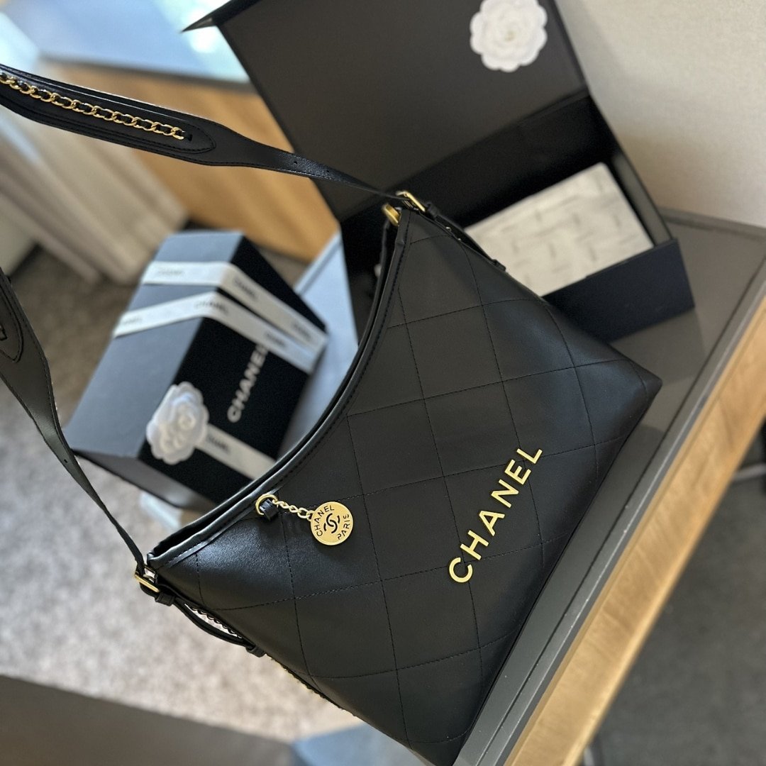 Chanel Hobo Bag Glossy Calfskin Black 25Cm/9.8in