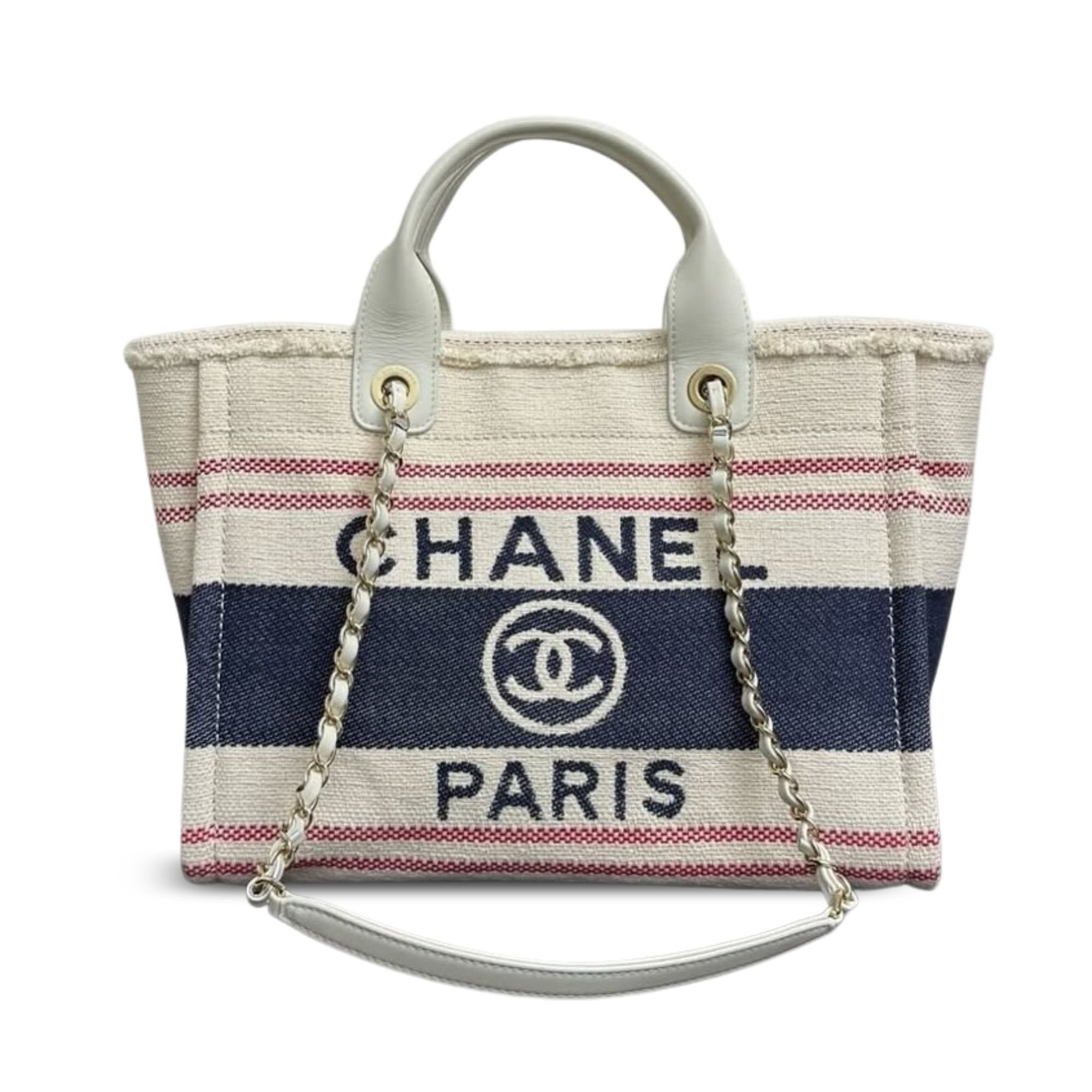 Chanel Deauville Shopping Small Tote 35Cm Mixed Fabric Calfskin White