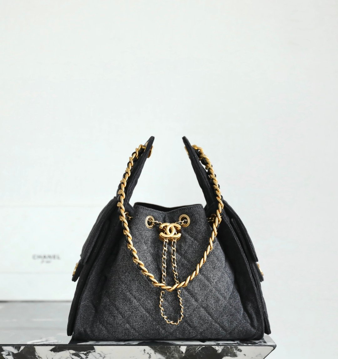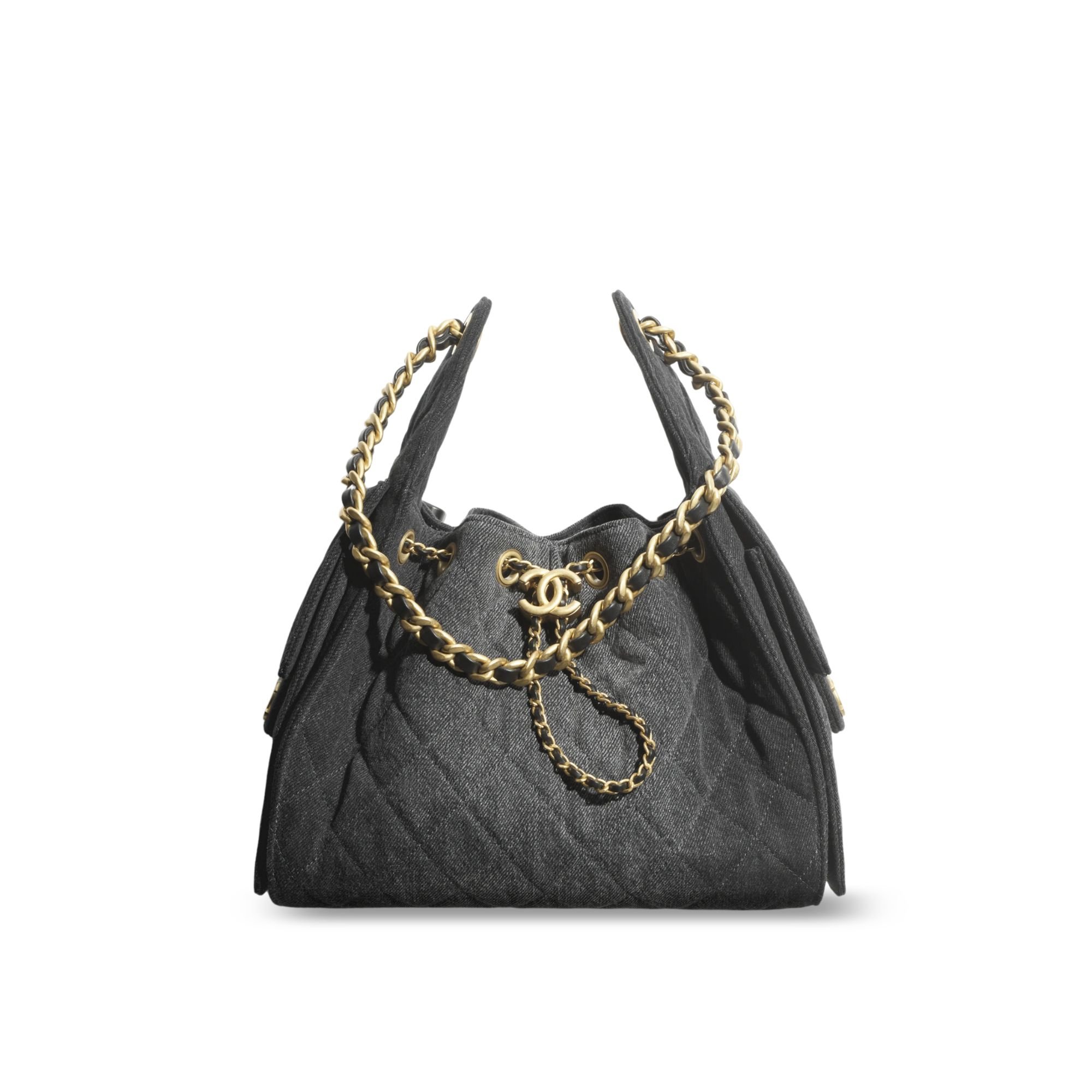 Chanel crossbody bag 25 Small Handbag Washed Denim & Gold-Tone Metal Black 30cm/11.8in