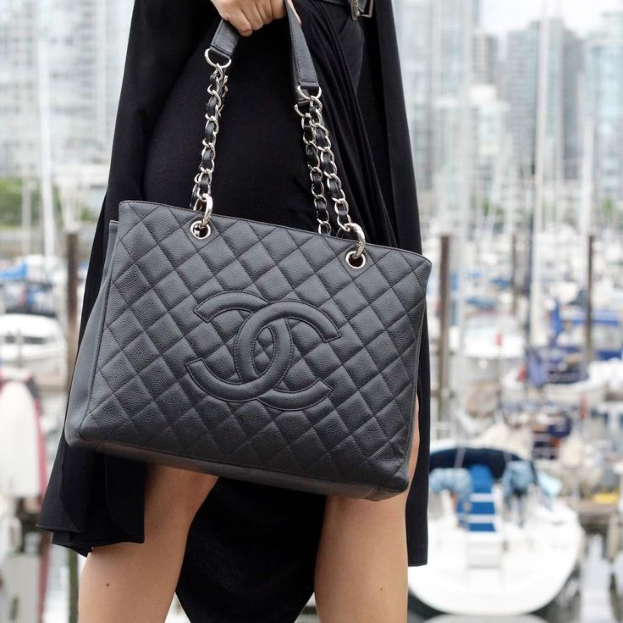 Chanel Classic Tote Bag Gold Toned Hardware Black 34cm