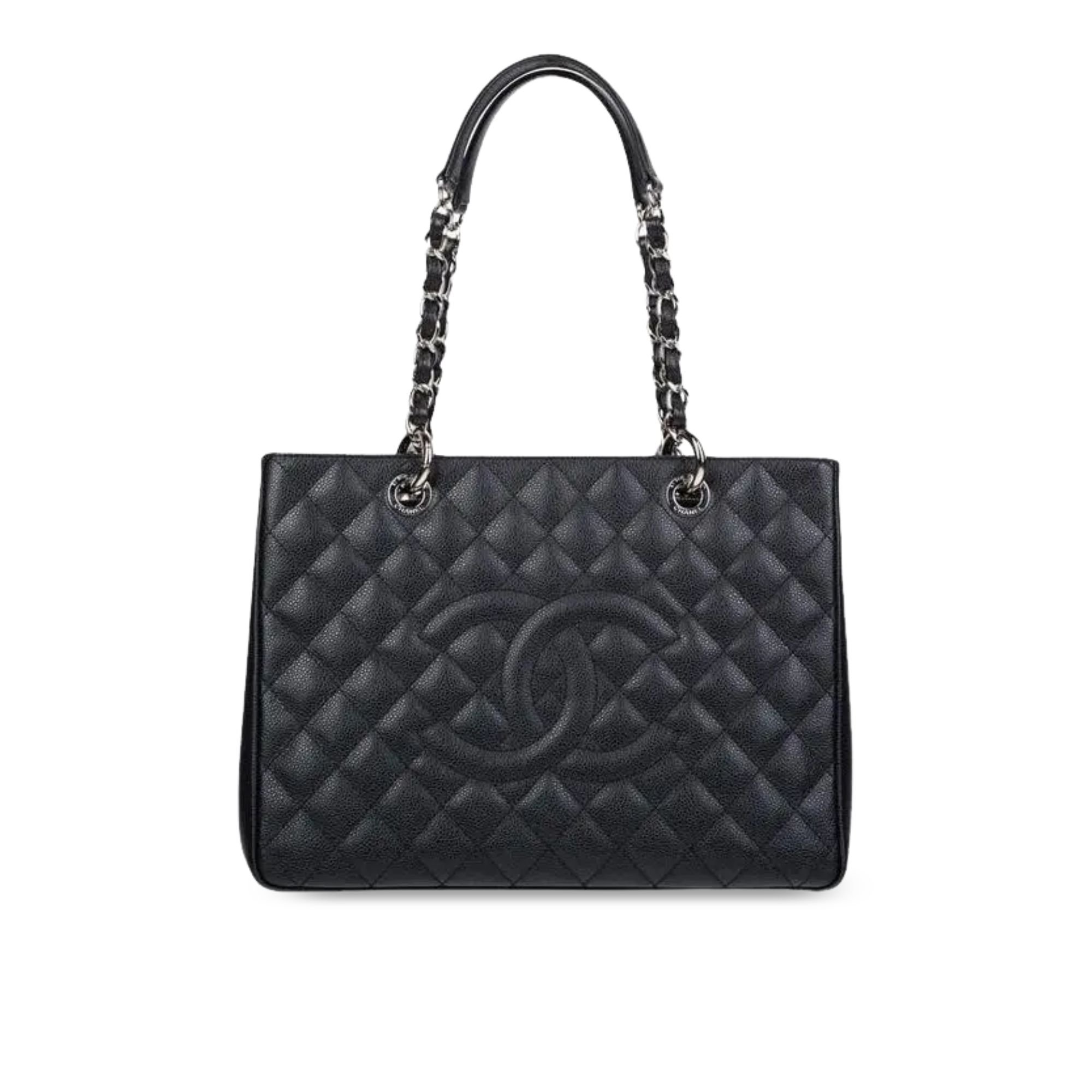 Chanel Classic Tote Bag Silver Hardware Black 34cm