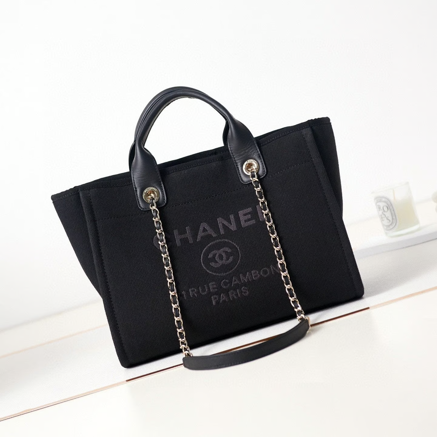 Chanel Deauville Shopping Small Tote Mixed Fabric Calfskin 35Cm Black