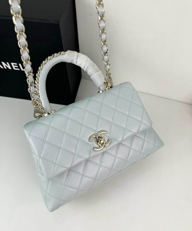 Chanel Coco Classic Flap Bag 24cm/9.4in Caviar Leather Silver Hardware �C Light Blue