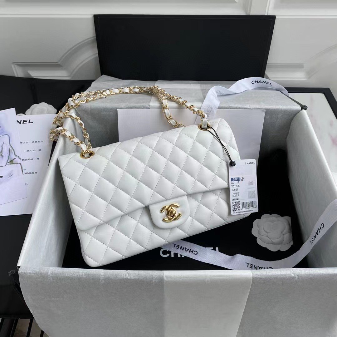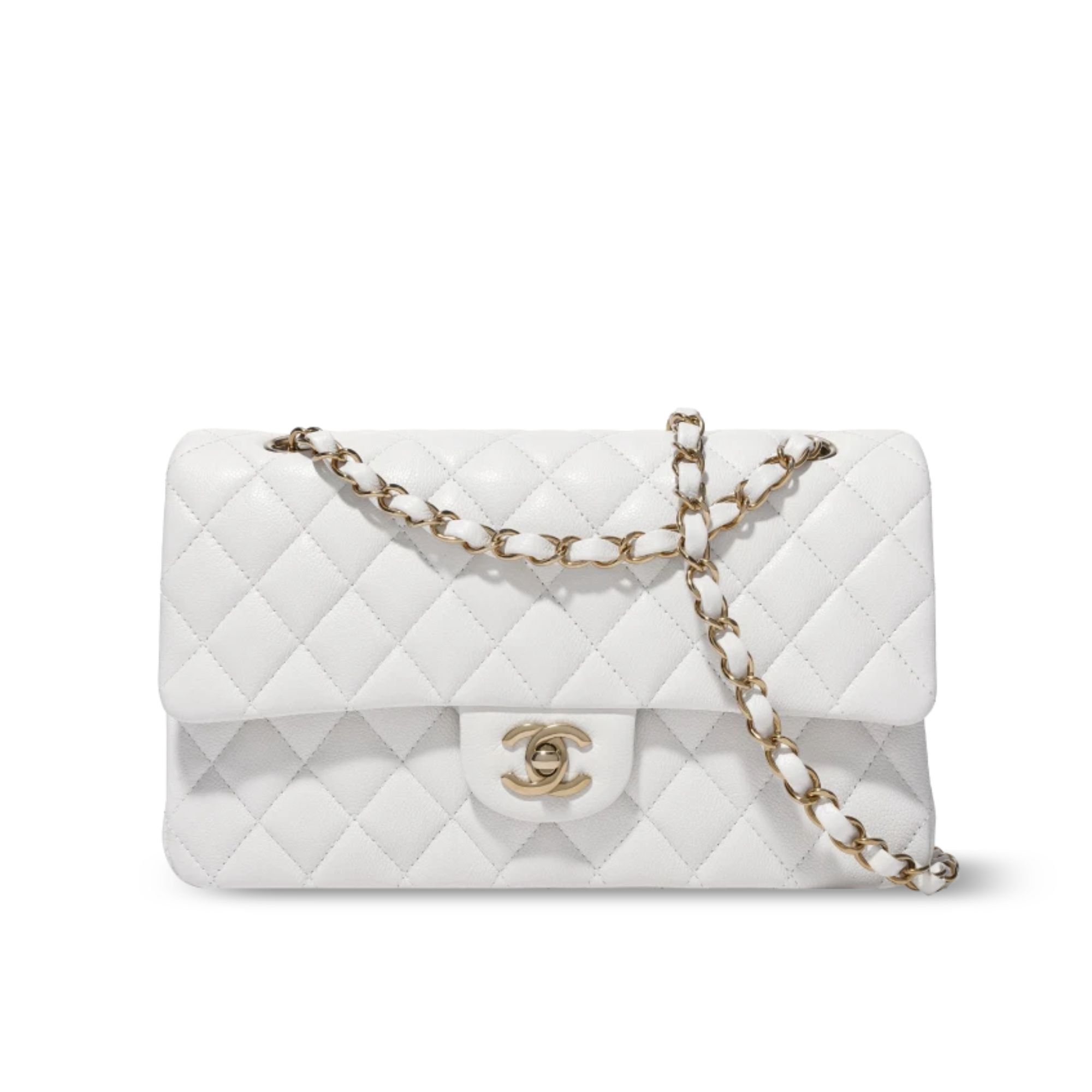 Chanel Flap Bag Gold Hardware With Chain White 17Cm/6.6in