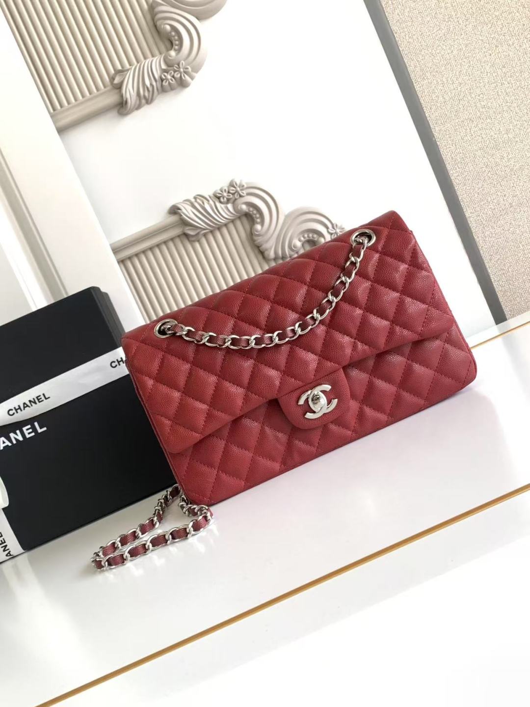 Chanel Classic Flap Bag 25 cm Red Silver-Tone Hardware A01112