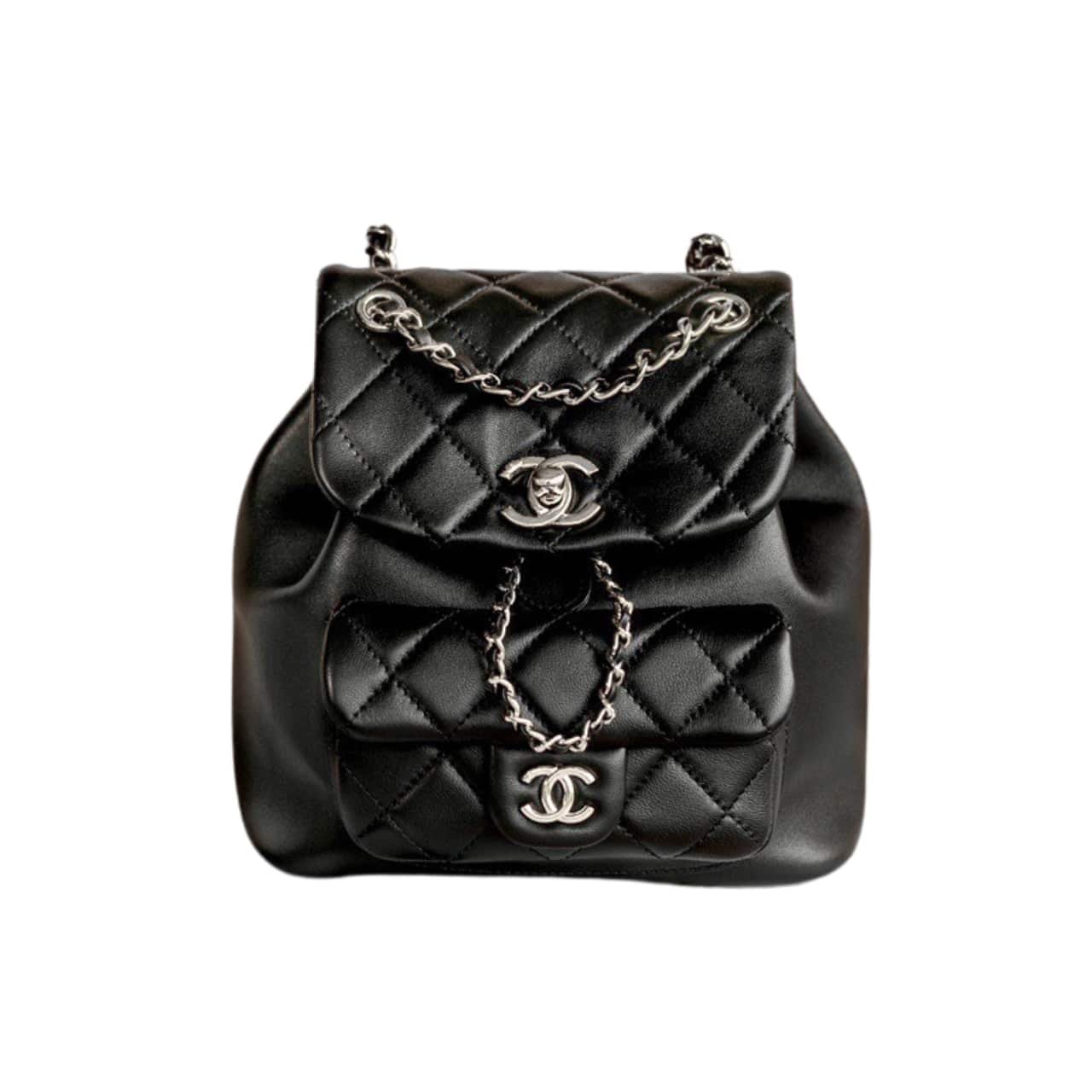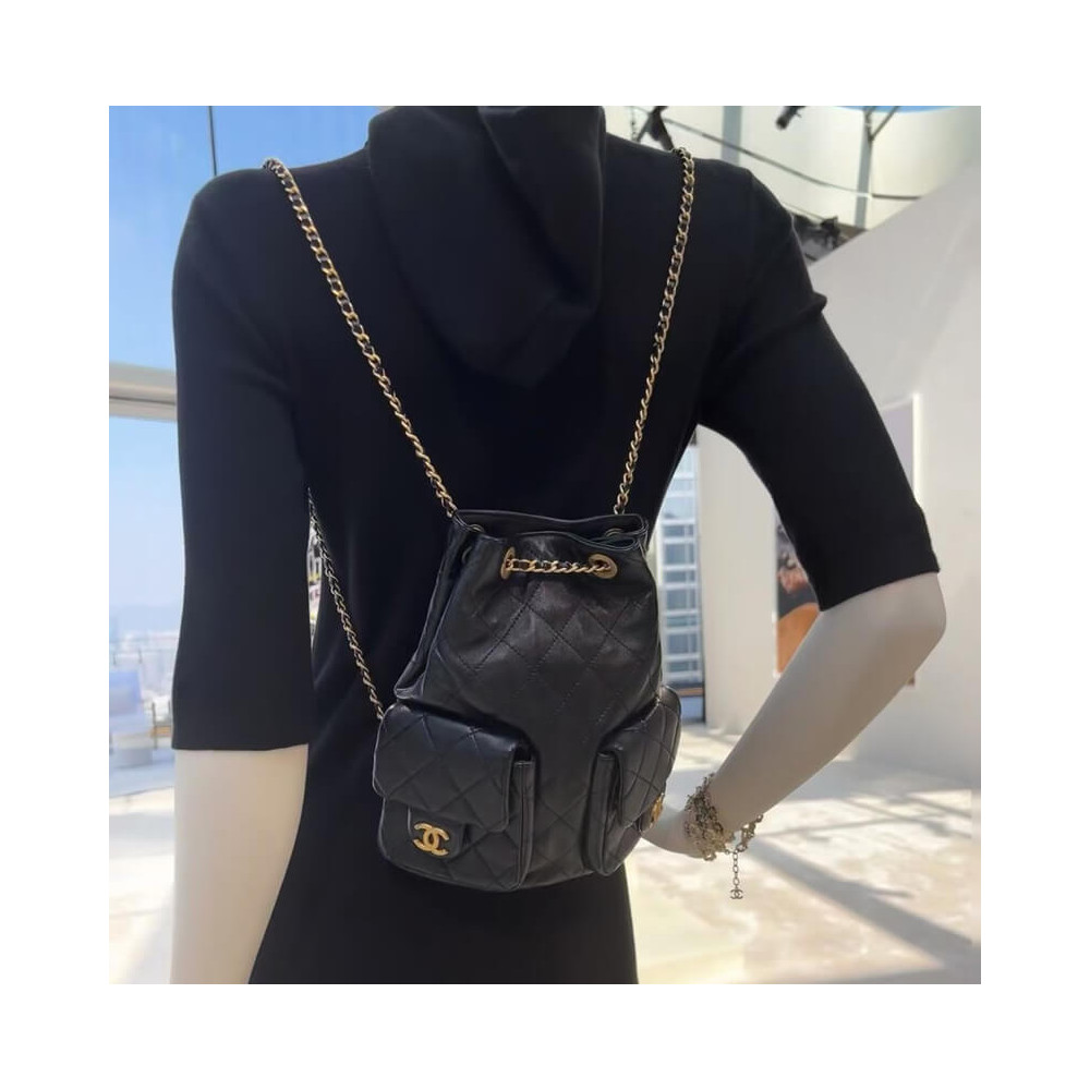 Chanel Duma Matelasse Leather Chain Backpack Black 20Cm/7.8in
