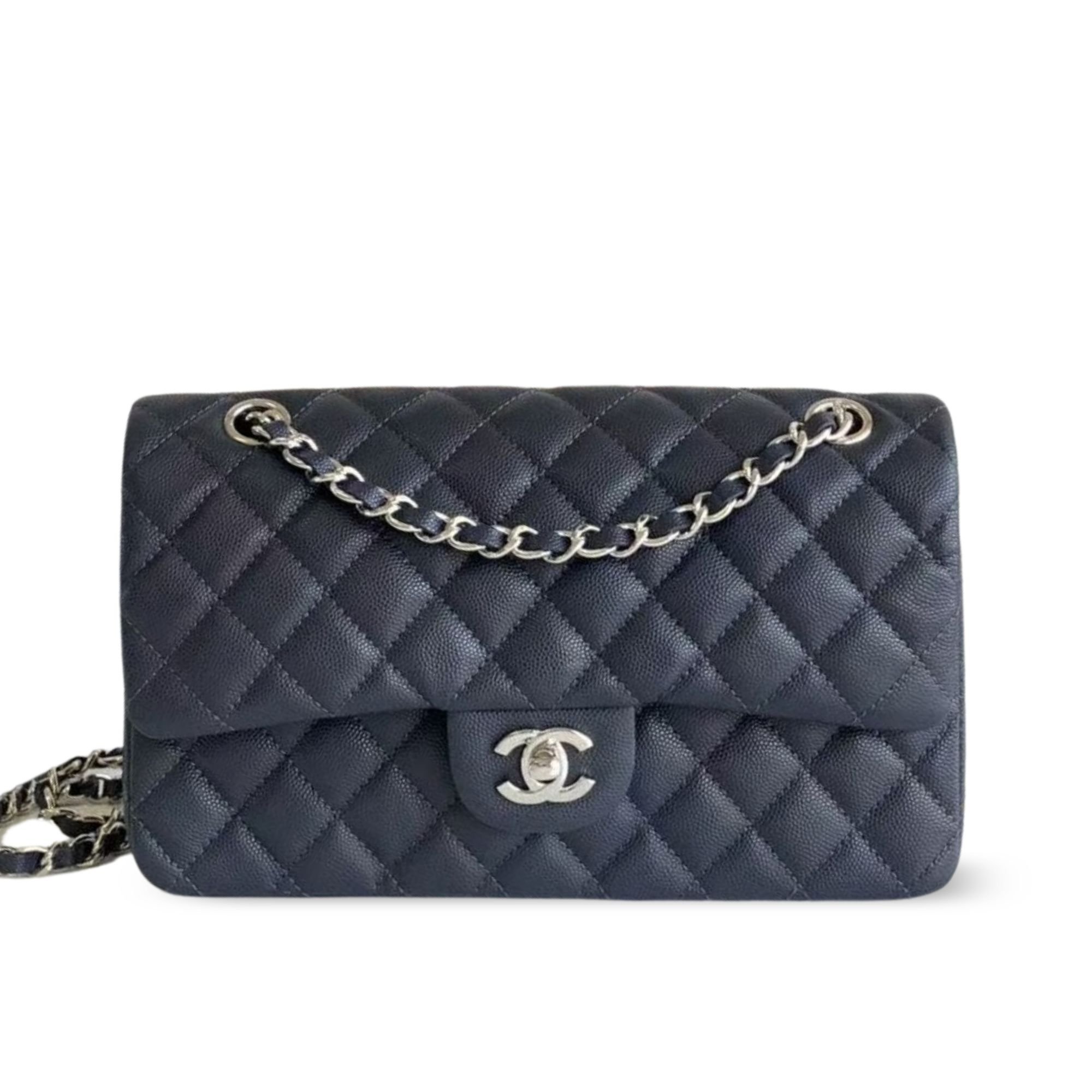 Chanel Classic Flap Bag 25 cm Navy Blue Silver-Tone Hardware A01112