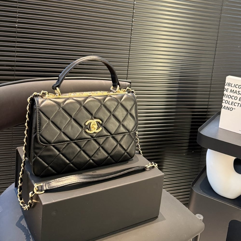 Chanel Flap Bag With Top Handle Black 25Cm/9.8in