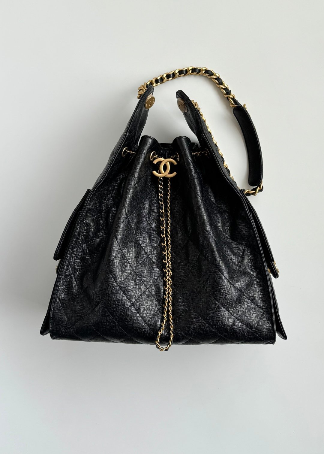 Chanel Grained Embossed Hobo Bag Black 17Cm/6.7in