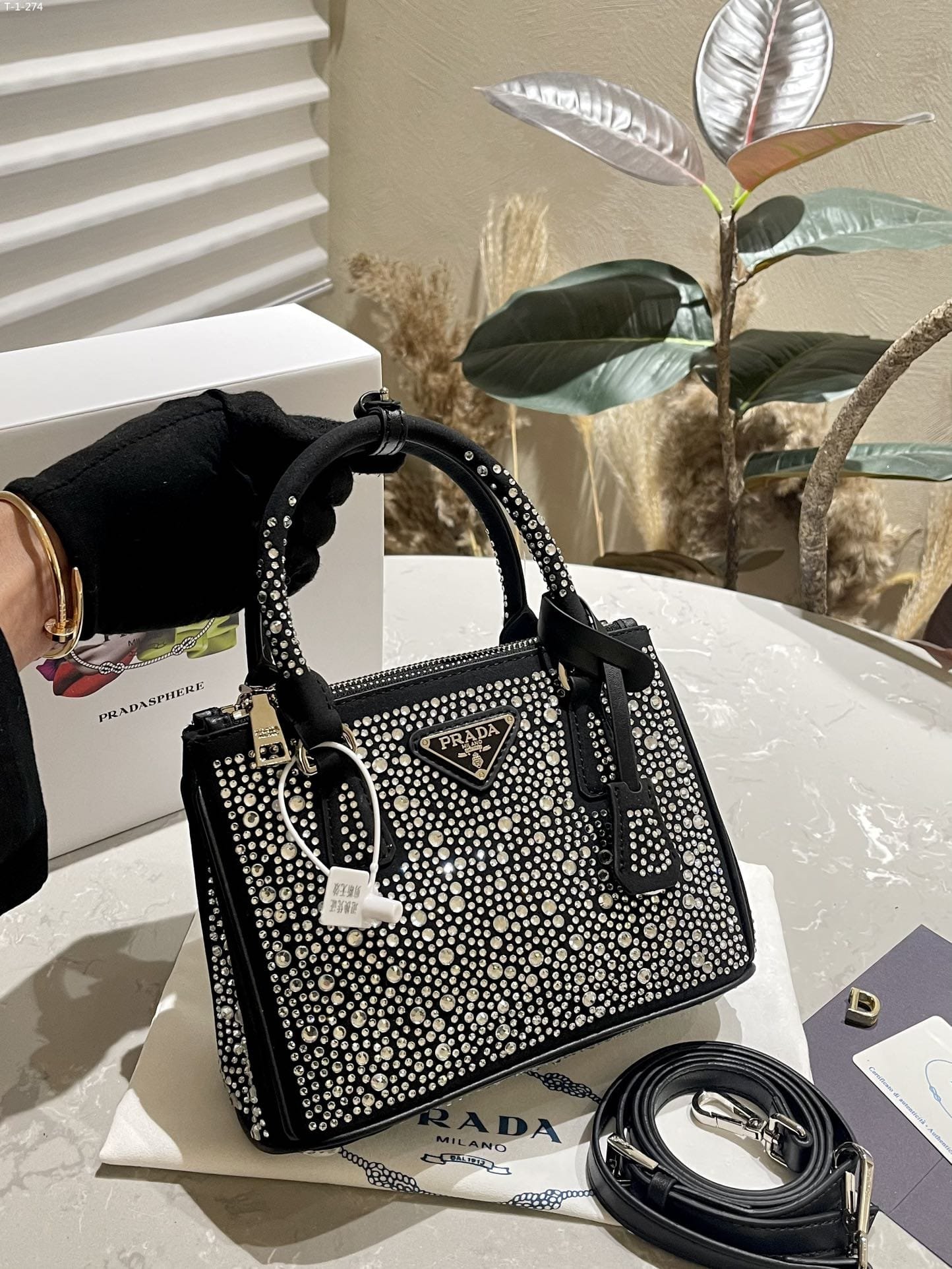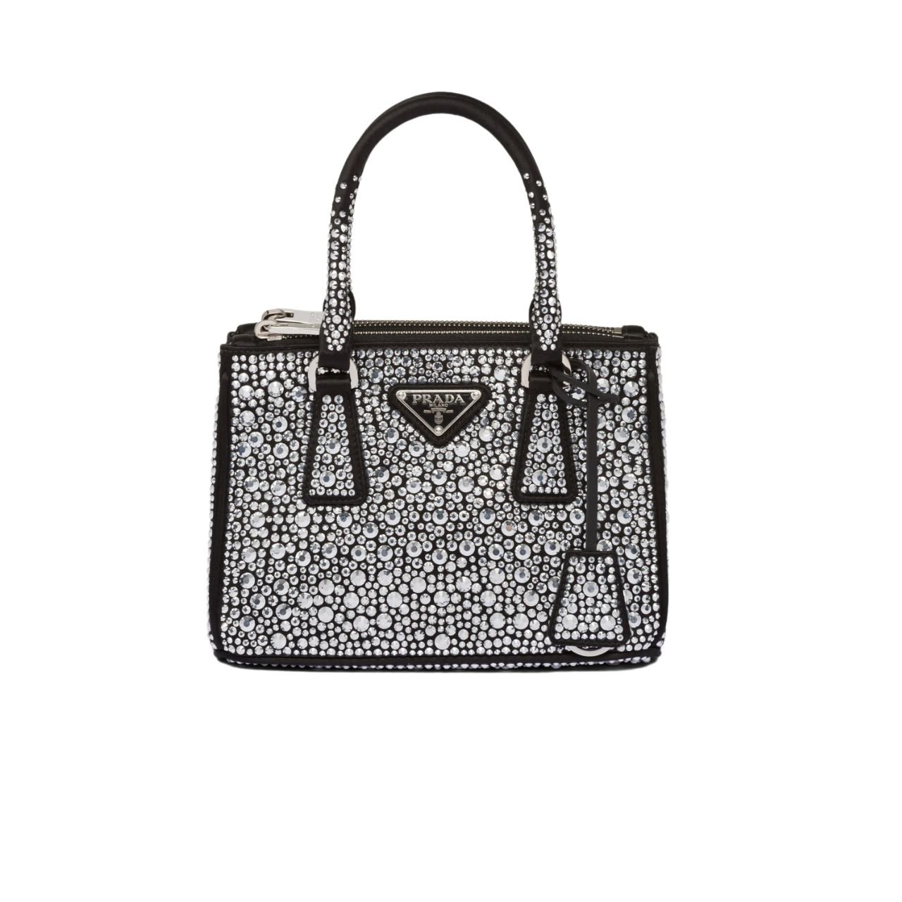 Prada Galleria Satin Mini Bag With Crystals Metal 23Cm