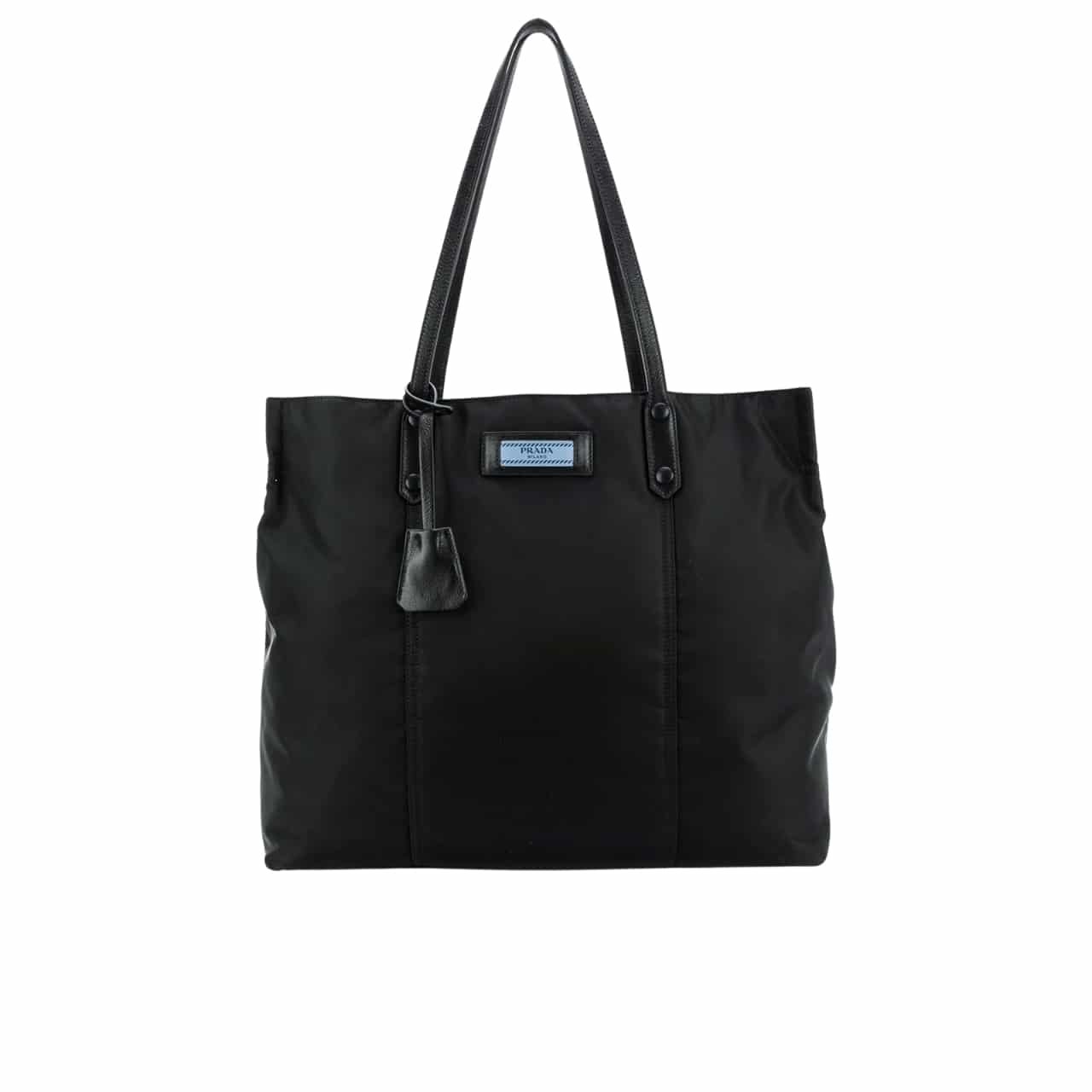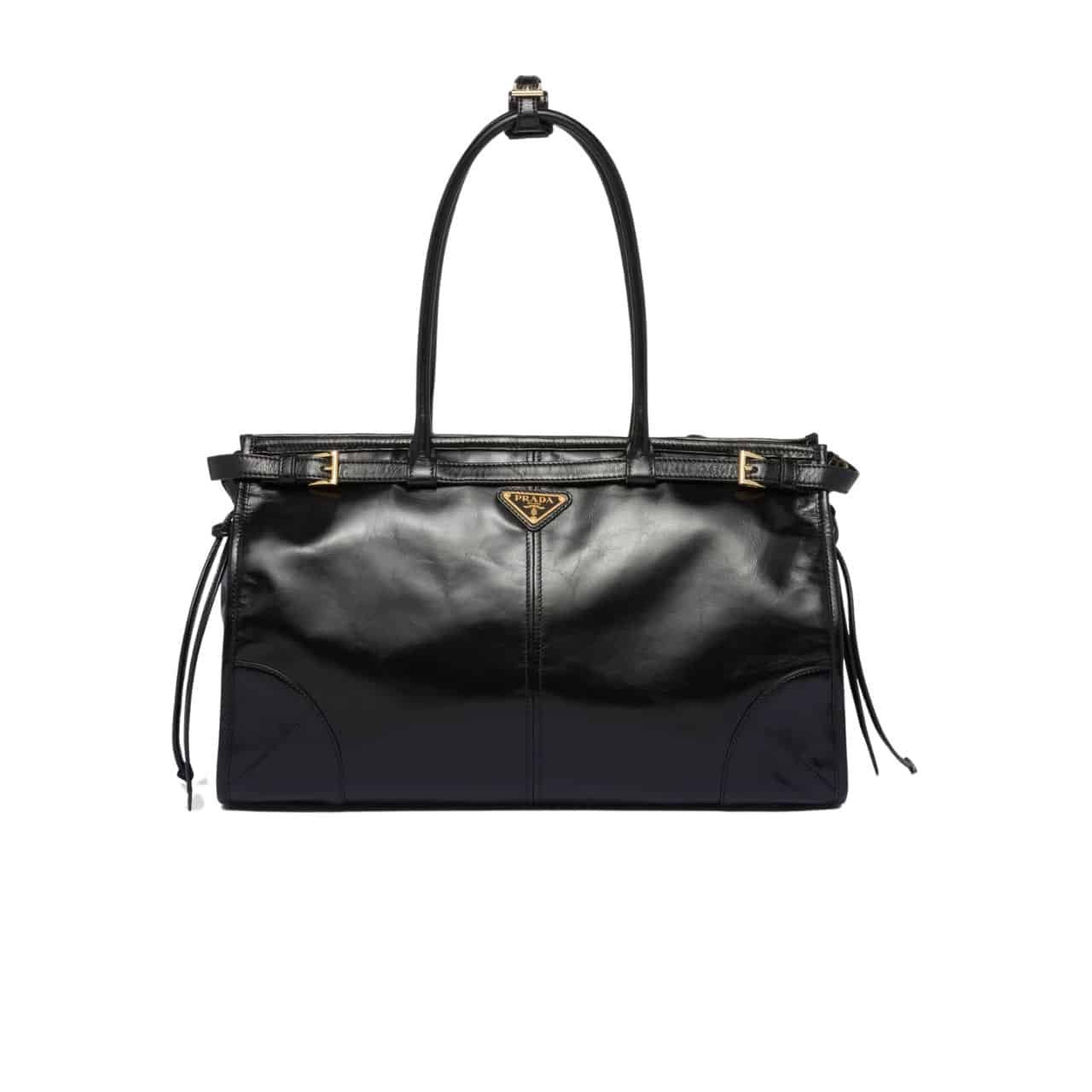 Prada Large Leather Tote Bag With Buckles Black 32Cm
