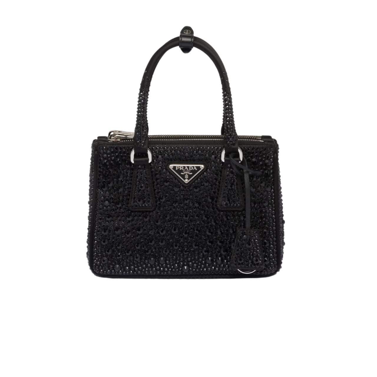 Prada Galleria Satin Mini Bag With Crystals Black 23Cm