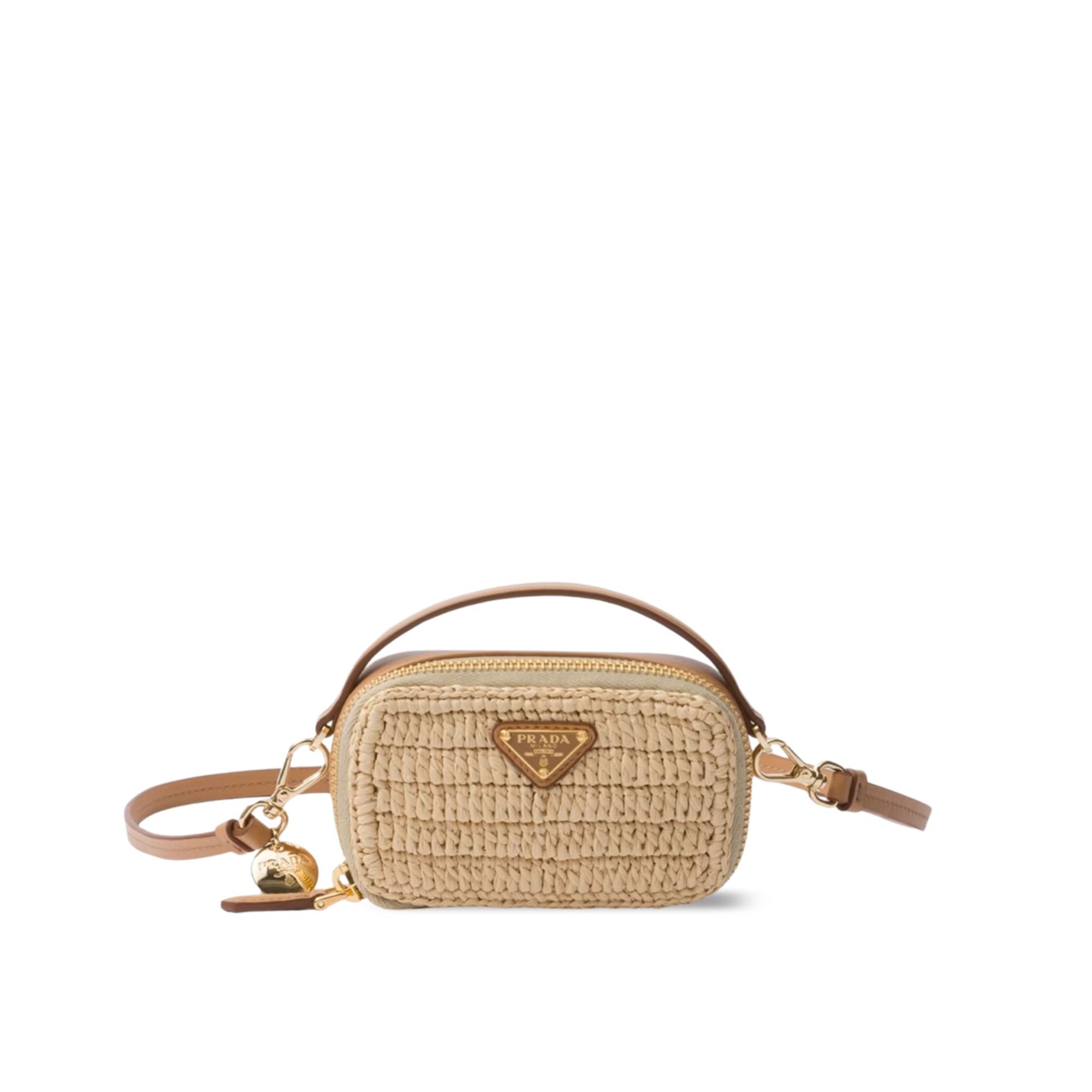 Prada Crochet And Leather Mini Bag Natural 18Cm