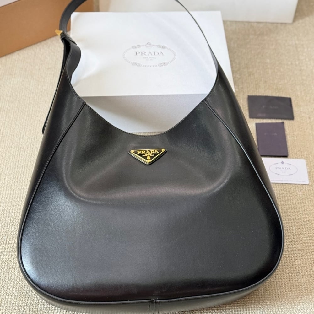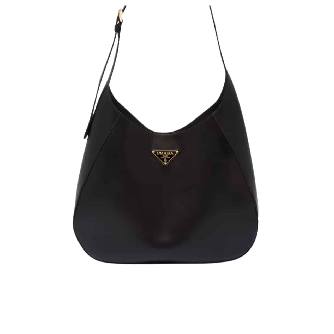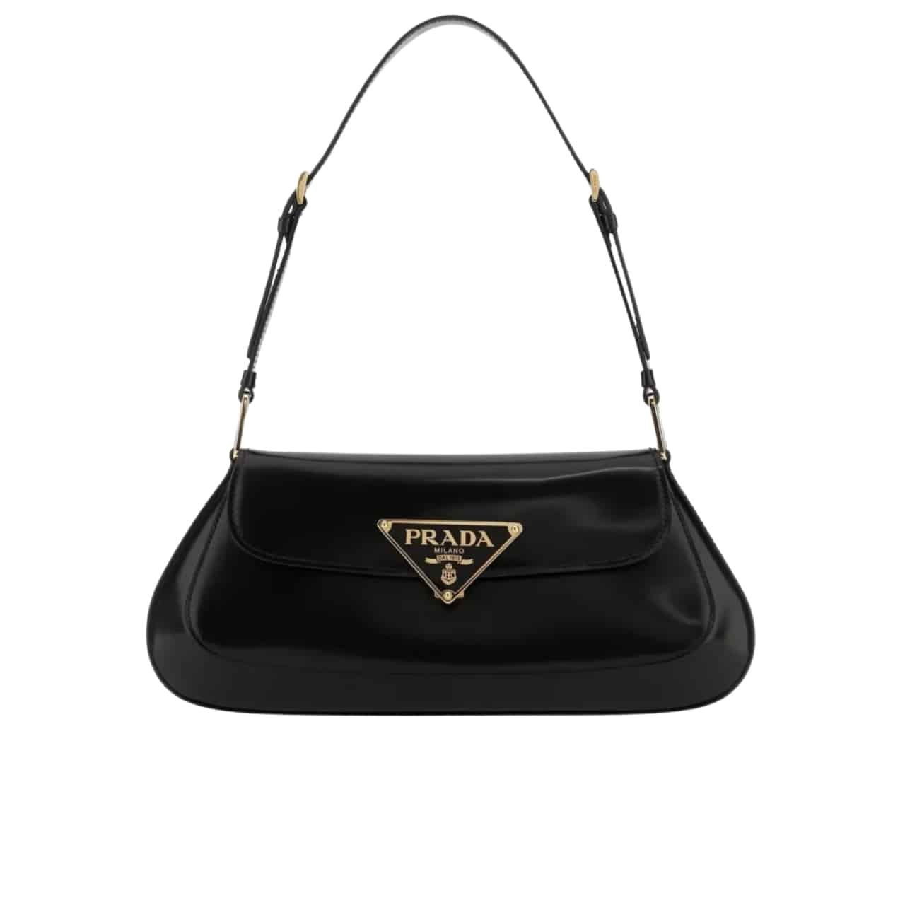Prada Cleo Bag In Brushed Leather With Triangle Logo Black 24Cm