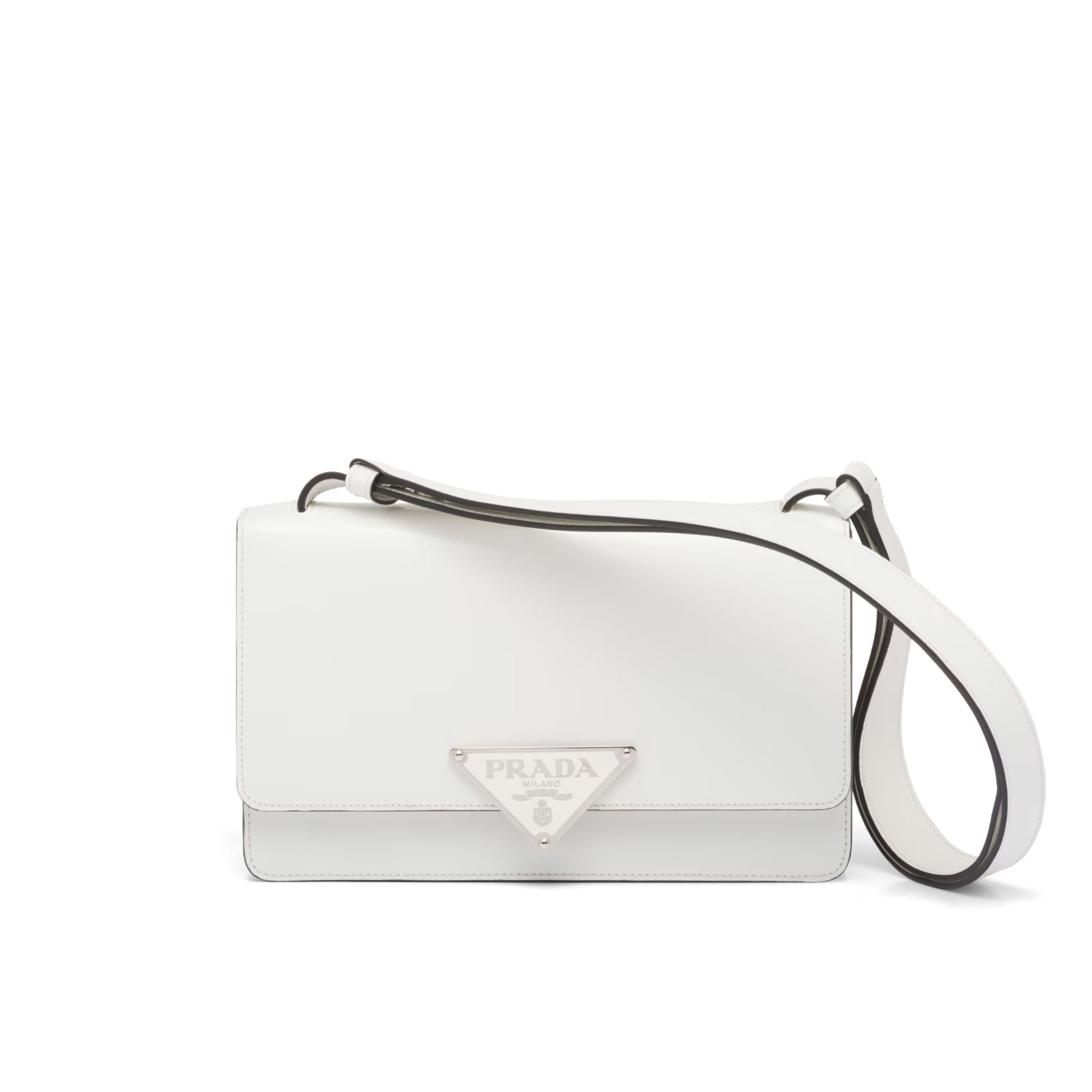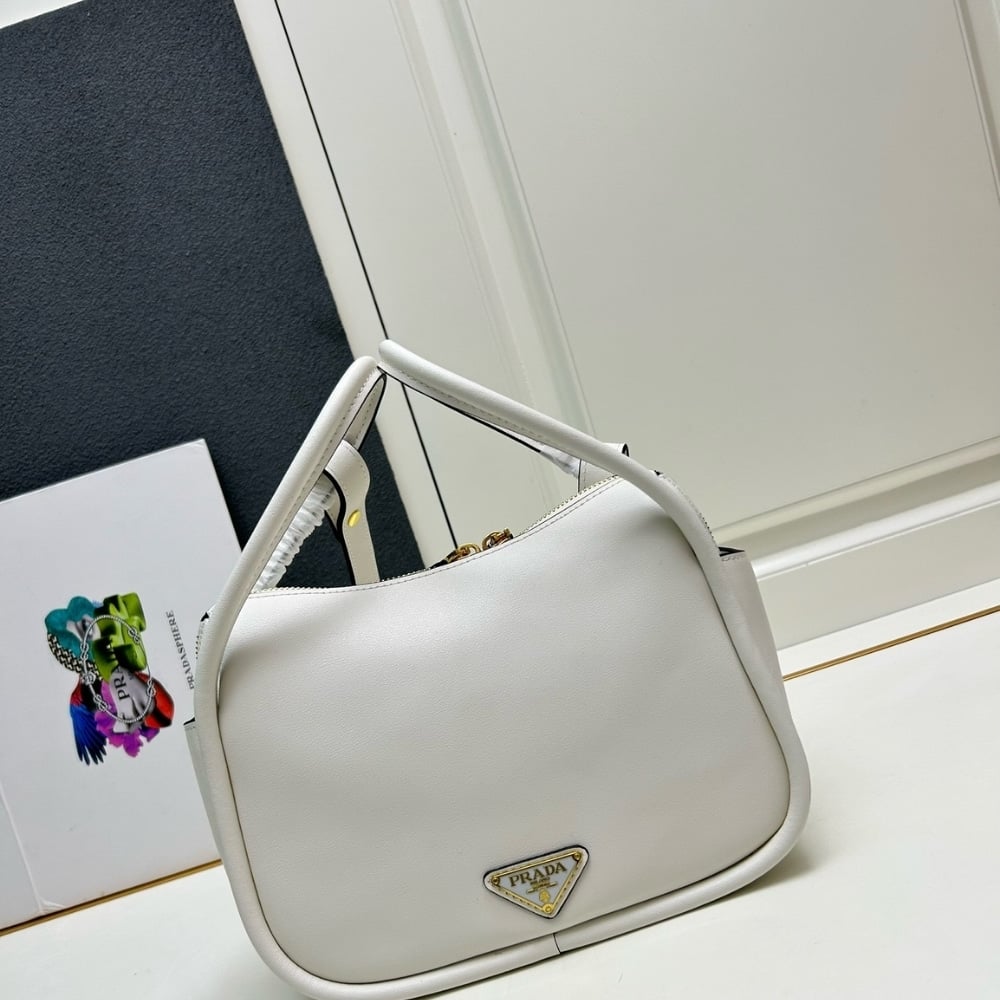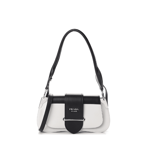 Prada City Calfskin Sidonie Shoulder Bag White Black 28Cm