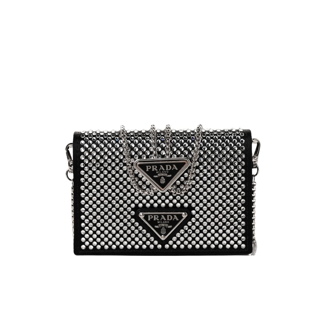 Prada Cardholder With Shoulder Strap And Crystals 13Cm