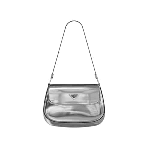 Prada Cleo Brushed Leather Shoulder Bag In Silver