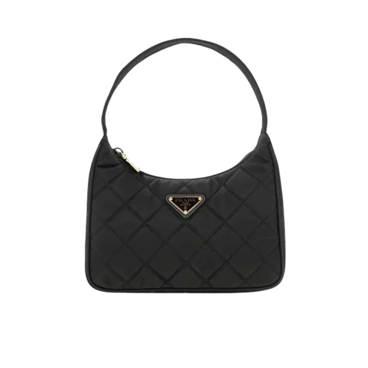 Prada Contenitore Maniglia Tessutu Nylon Quilted Shoulder Bag Black 21Cm