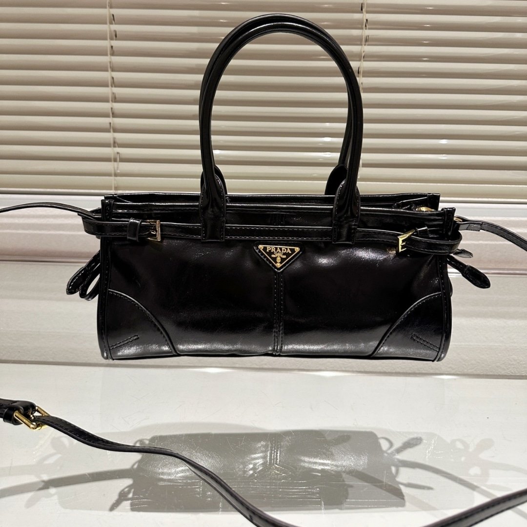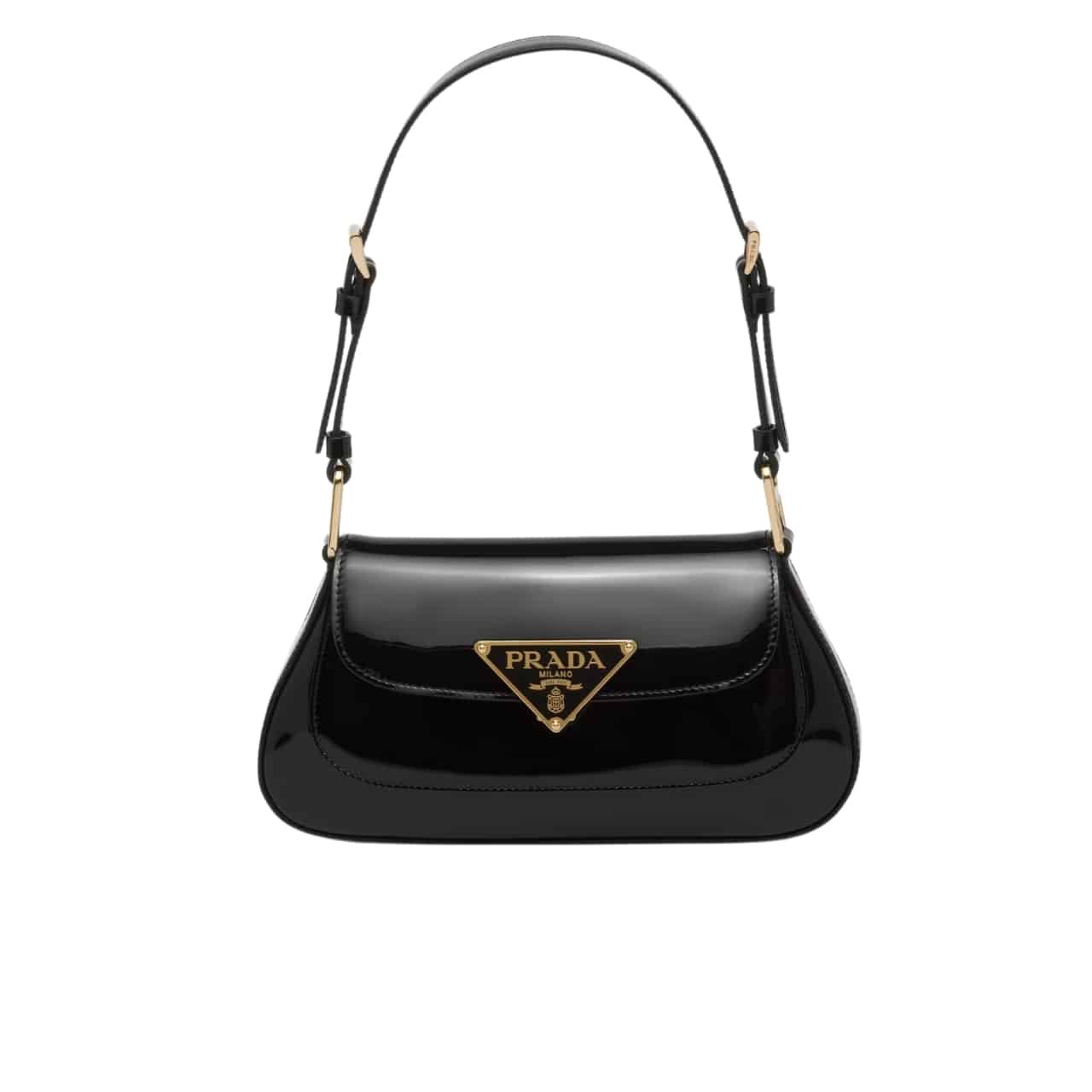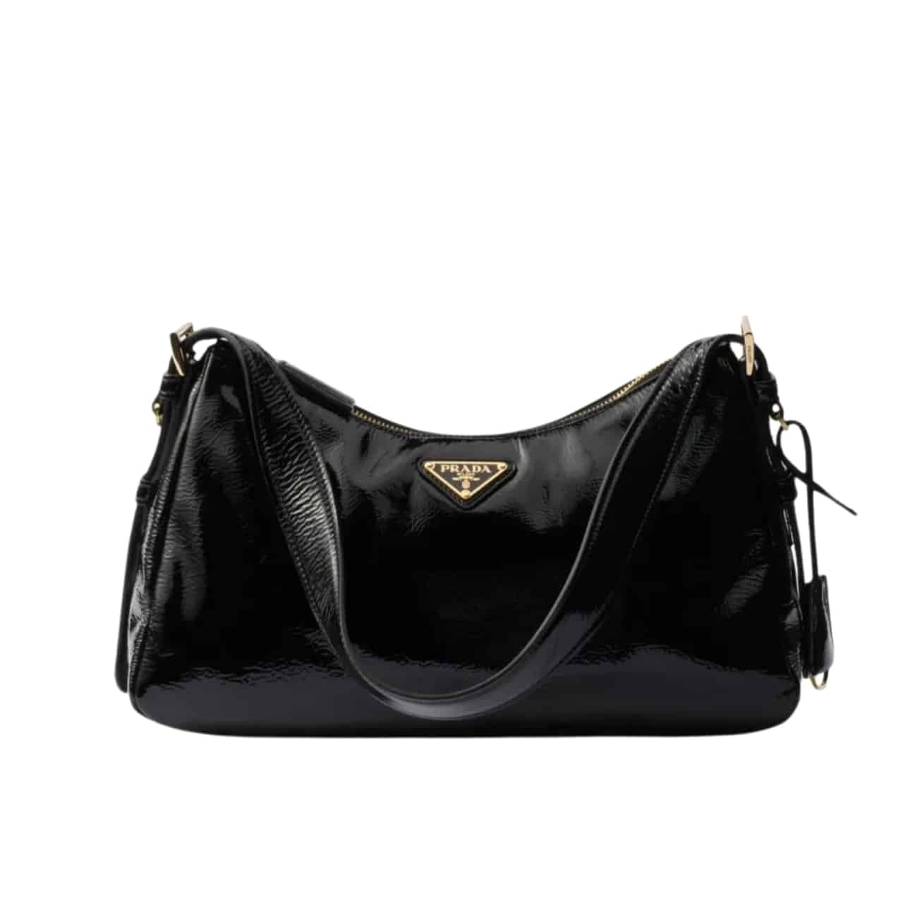 Prada Patent Leather Shoulder Bag In Cherry Black 25Cm
