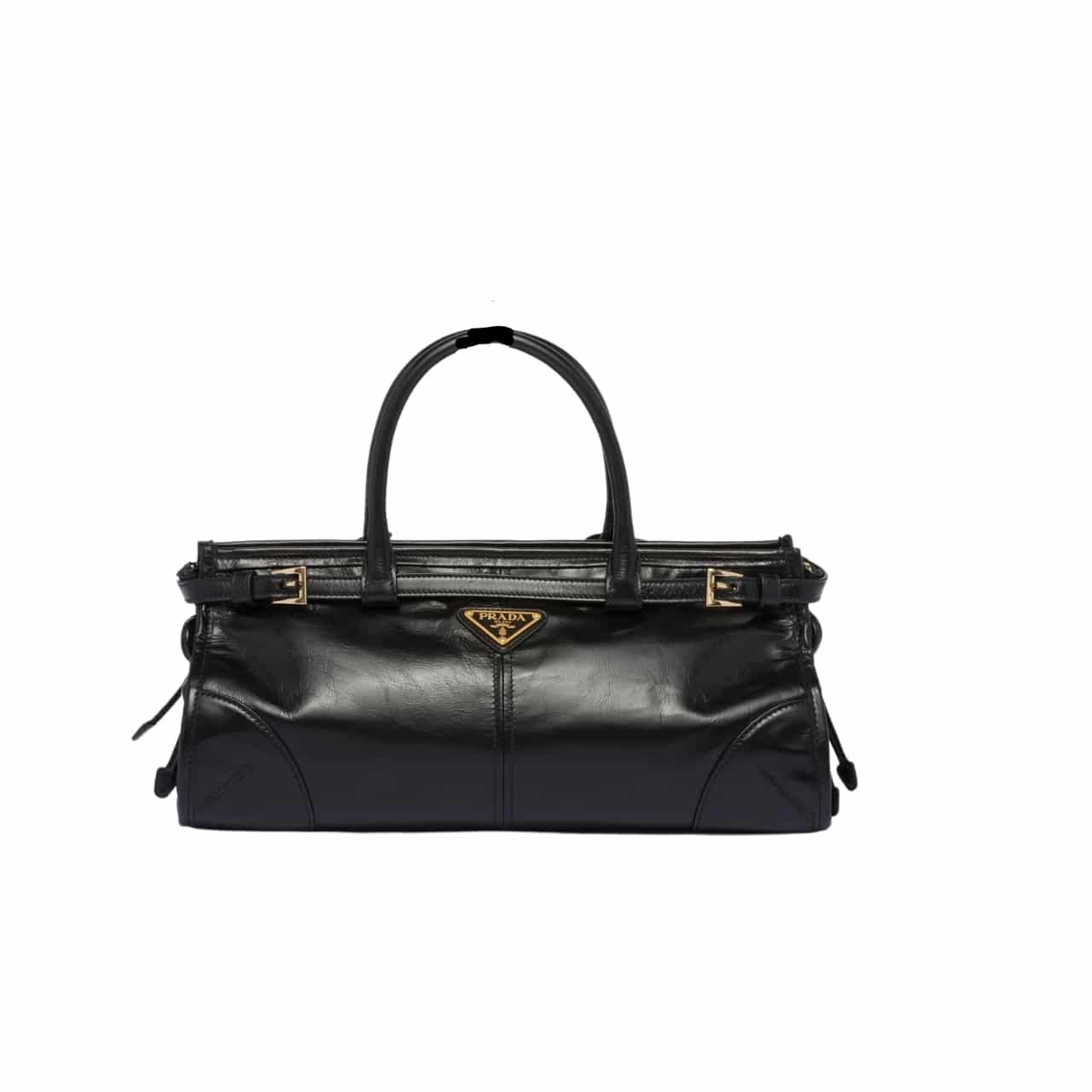 Prada Medium Leather Shoulder Bag Black 38Cm