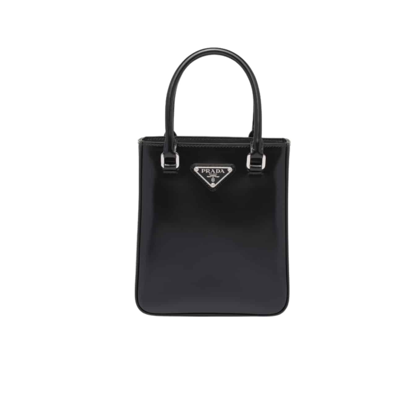 Prada Logo Embellished Leather Cross Body Bag Black 15Cm