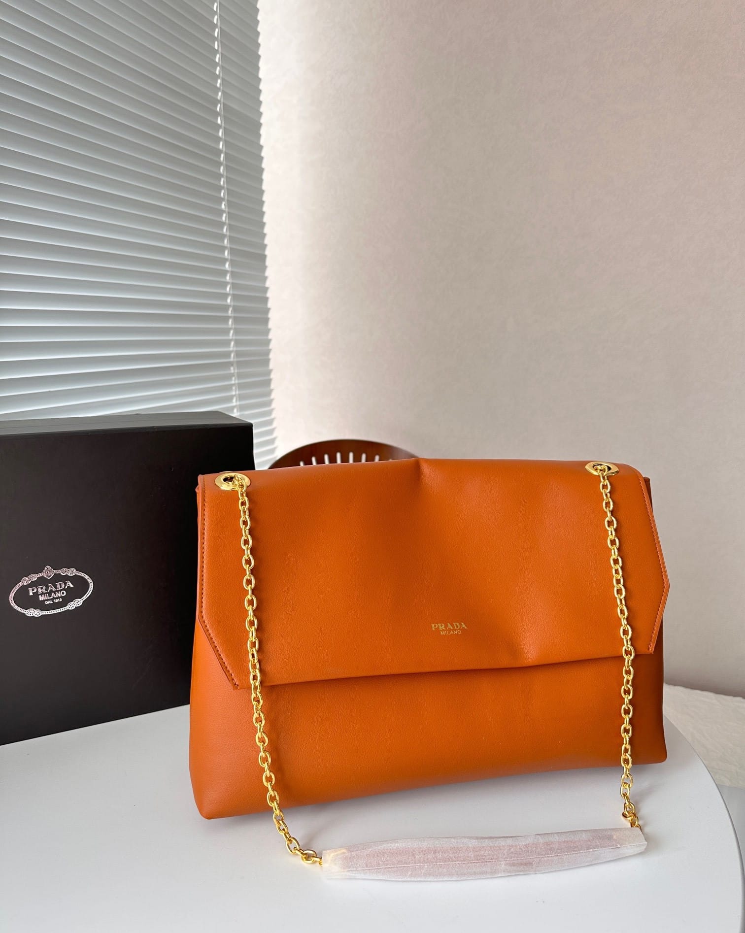 Prada Medium Leather Shoulder Bag Orange 38Cm
