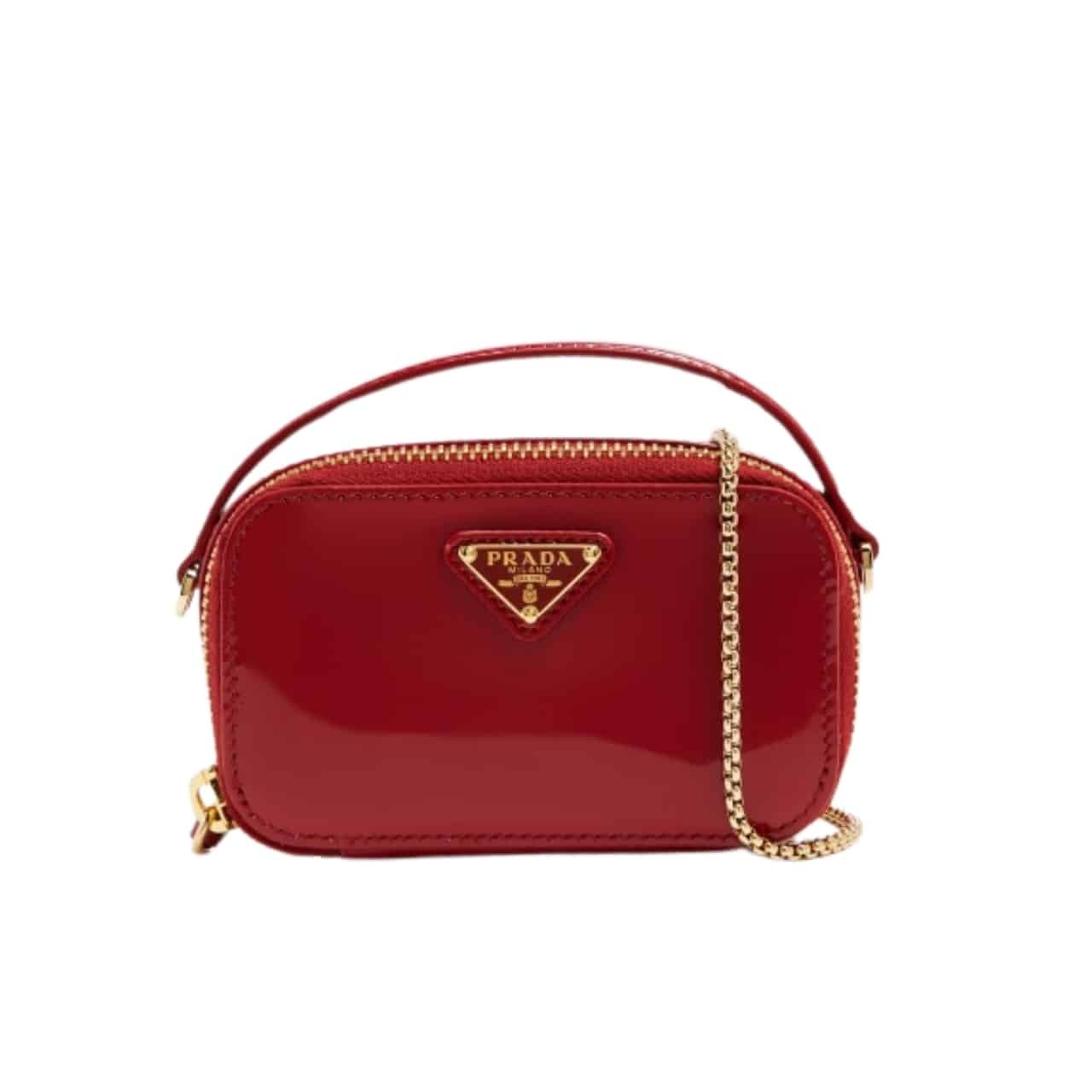 Prada Patent Leather Shoulder Bag In Cherry Red 25Cm