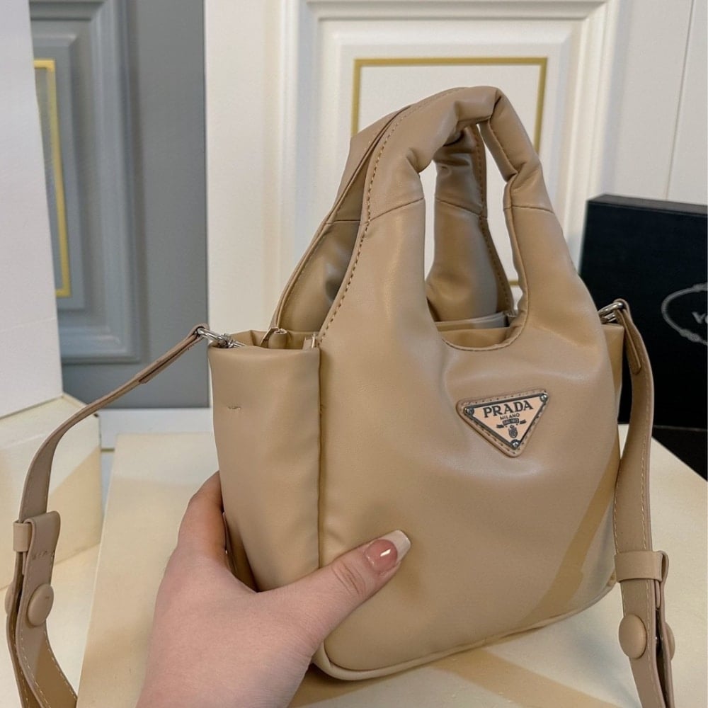 Prada Padded Soft Leather Bag Desert Beige 19Cm