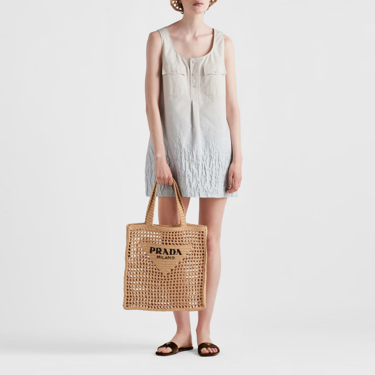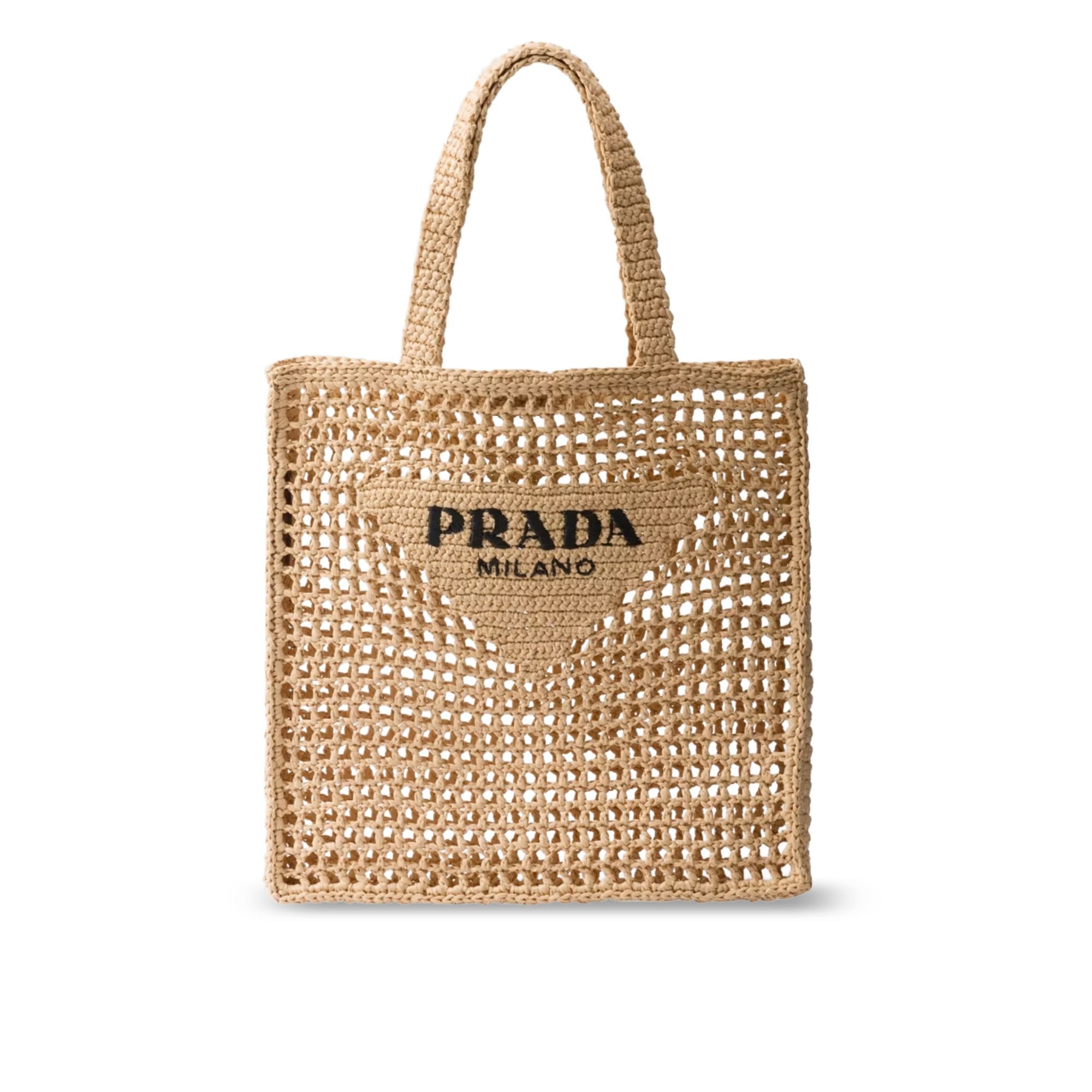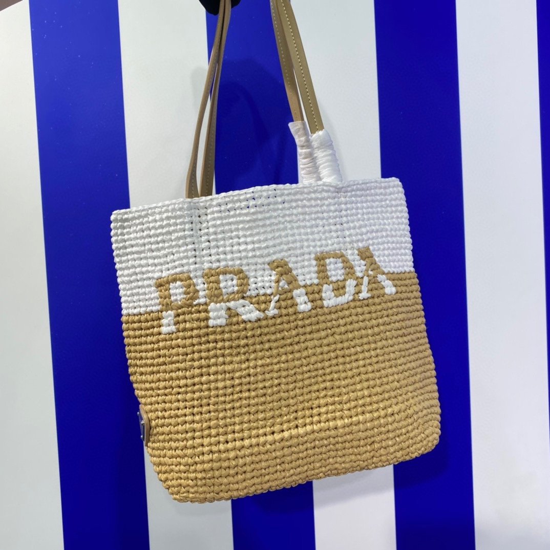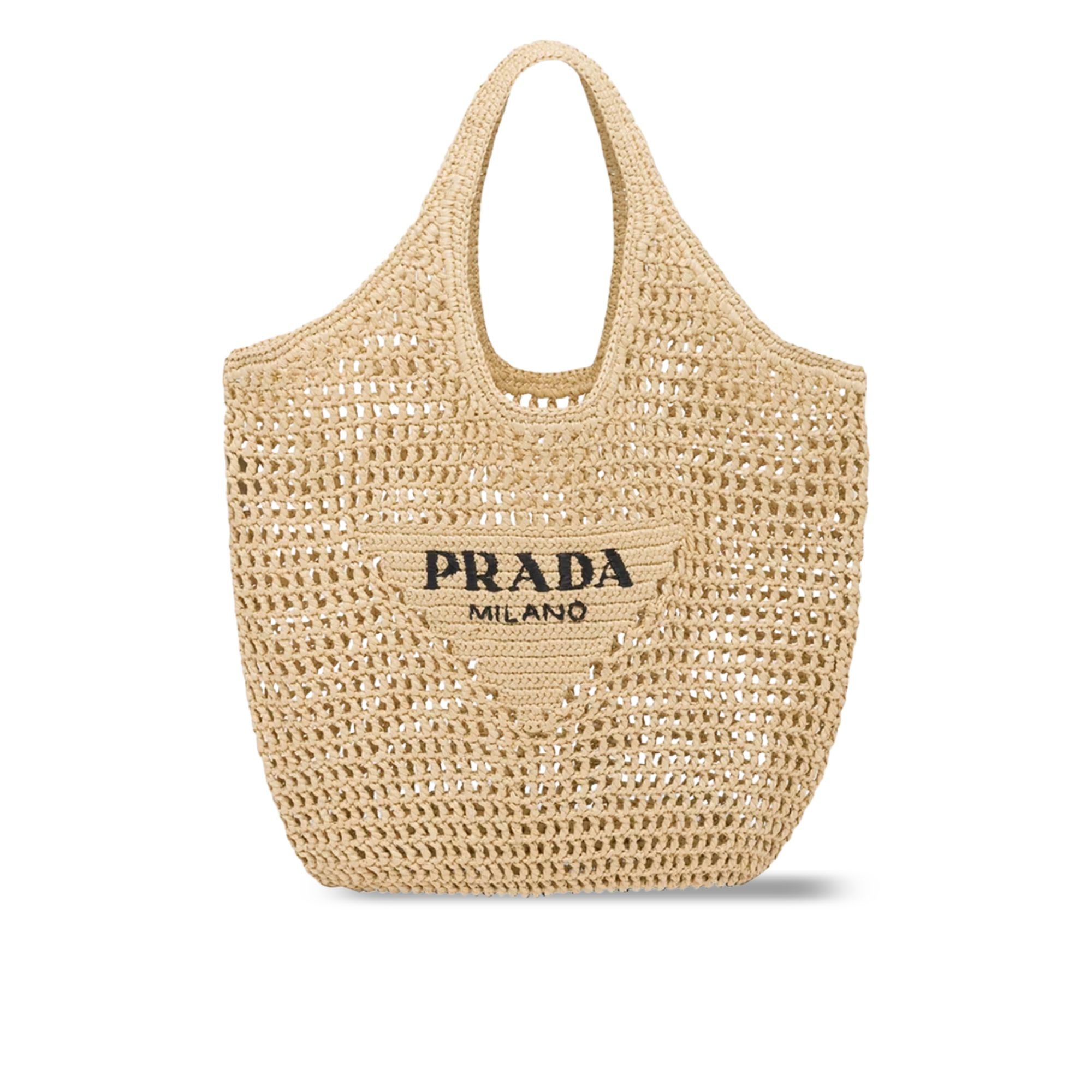 Prada Natural Crochet Logo Tote Bag Beach Bag 38 cm