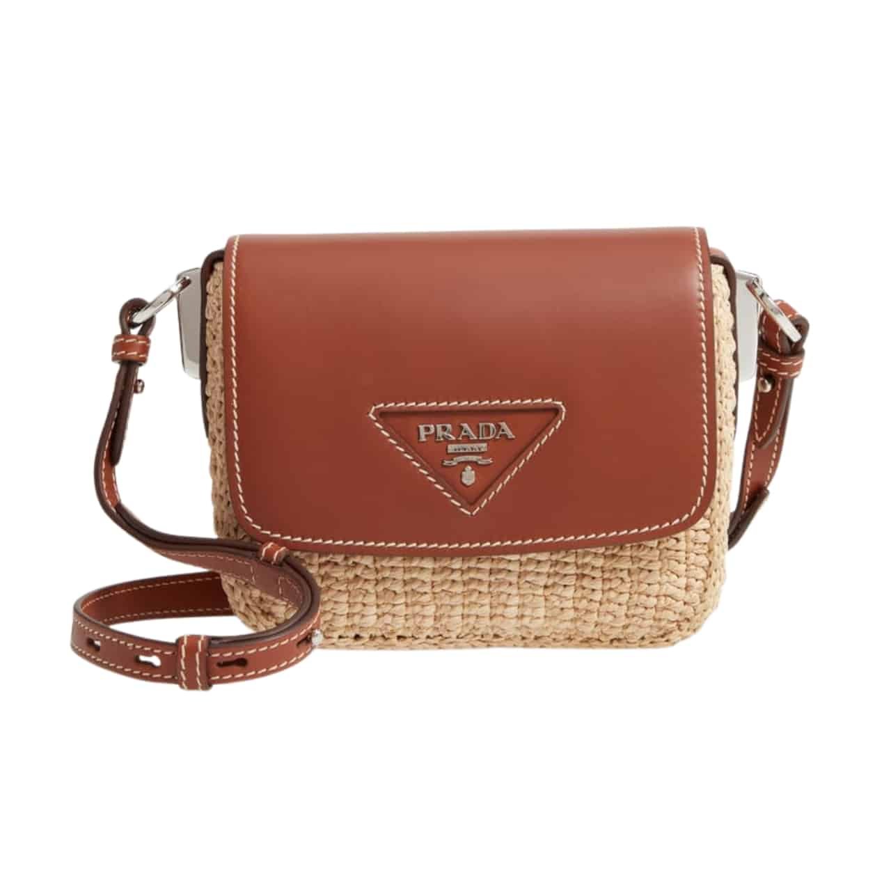 Prada Raffia And Leather Crossbody Bag Naturale Brown 20Cm