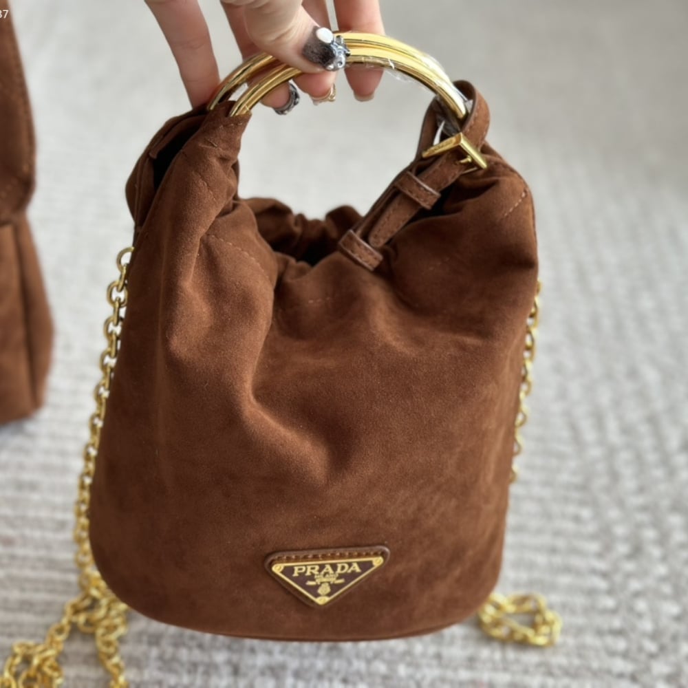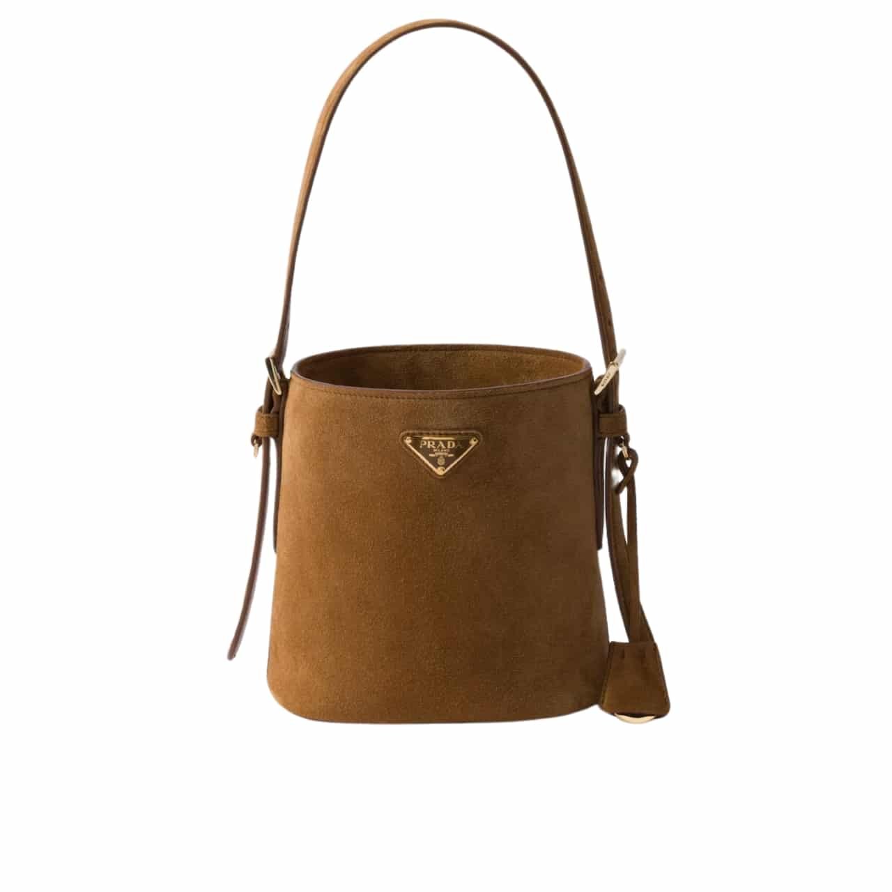 Prada Suede Mini Bucket Bag Cinnamon 18Cm