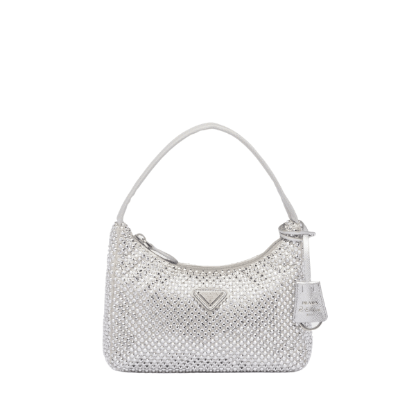 Prada Satin Mini Bag With Artificial Crystals Silver 21Cm