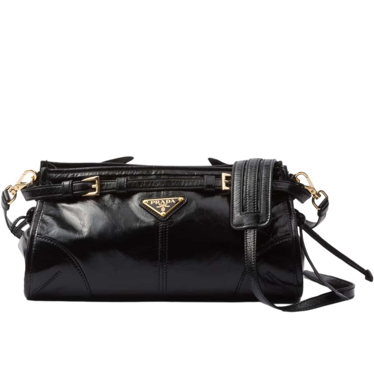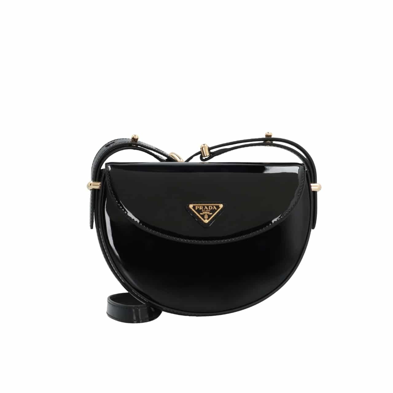 Prada Triangle Logo Patent Leather Shoulder Bag Black 17Cm
