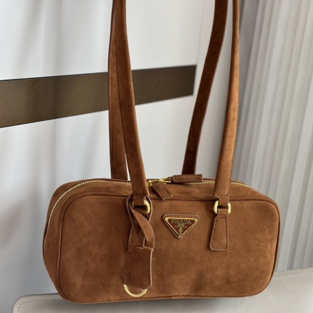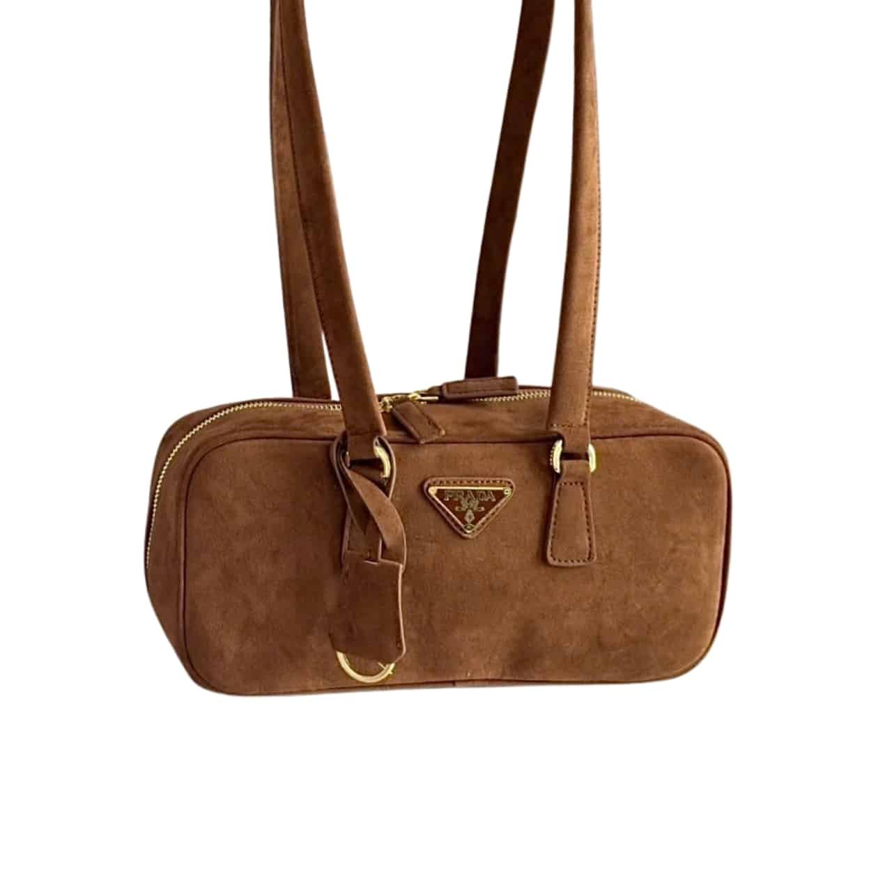 Prada Suede Shoulder Bag Cocoa Brown 29Cm